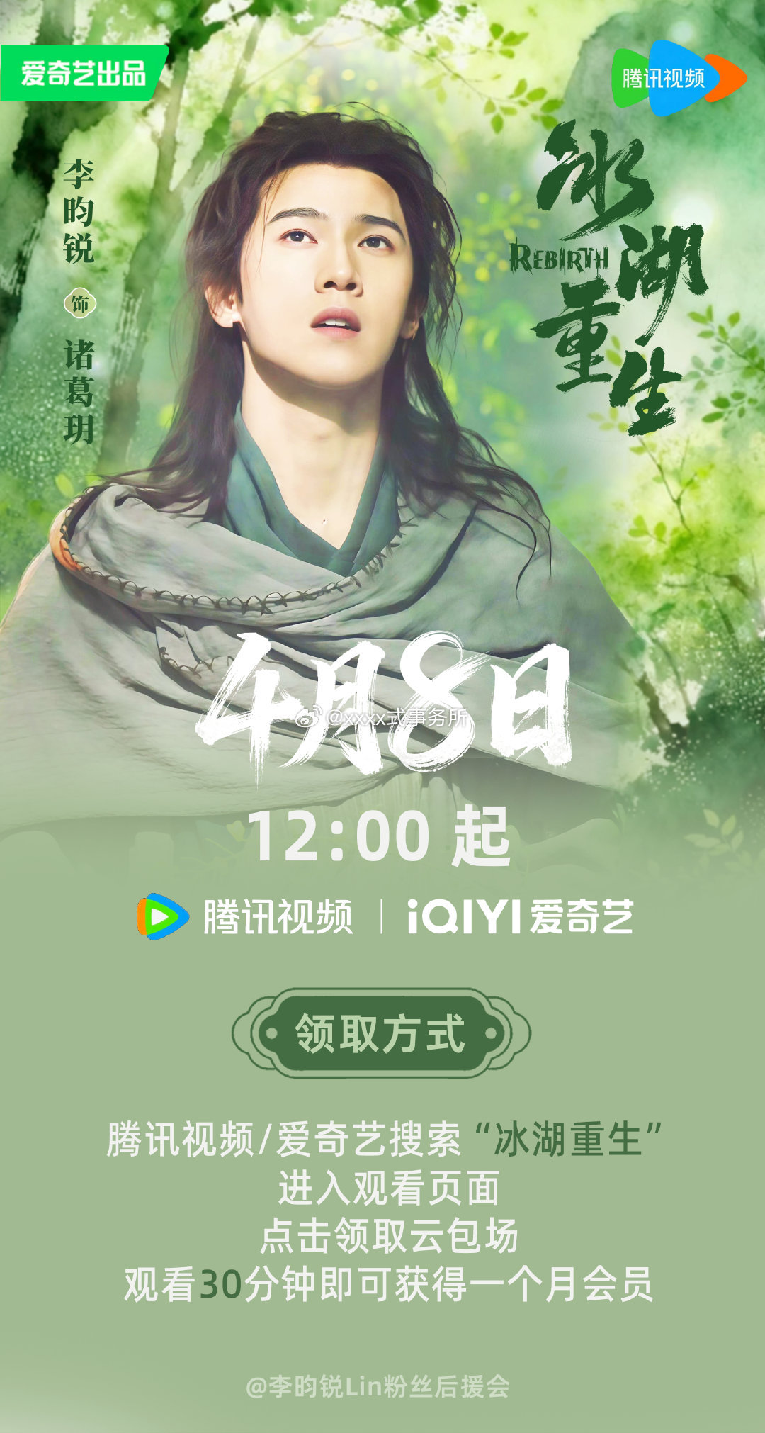 李昀锐家4月8号中午12点开始投放云包场,腾讯爱奇艺都🈶 ,累计10w座云包场,快来