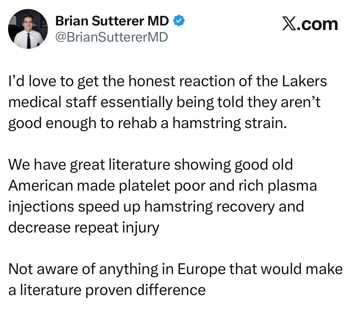 我太想知道湖人队医疗团队的真实反应了——他们基本上等于被告知,连腿筋拉伤的康复都做不好、水平不够。