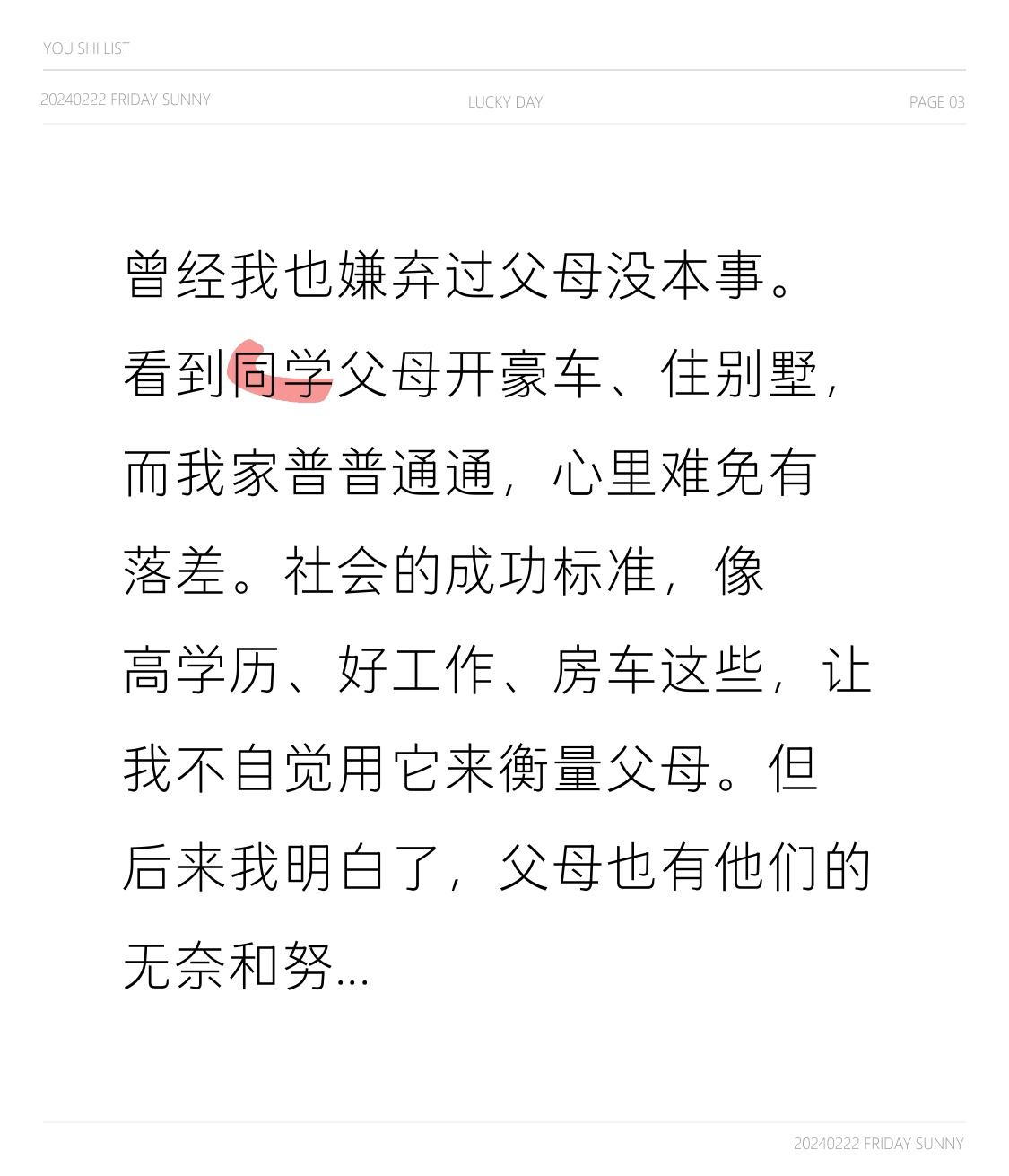 曾经我也嫌弃过父母没本事。看到同学父母开豪车、住别墅,而我家普普通通,心里难免有落差。社会的成功标准,像高学历、好工作、房车这些,让我不自觉用它来衡量父母。