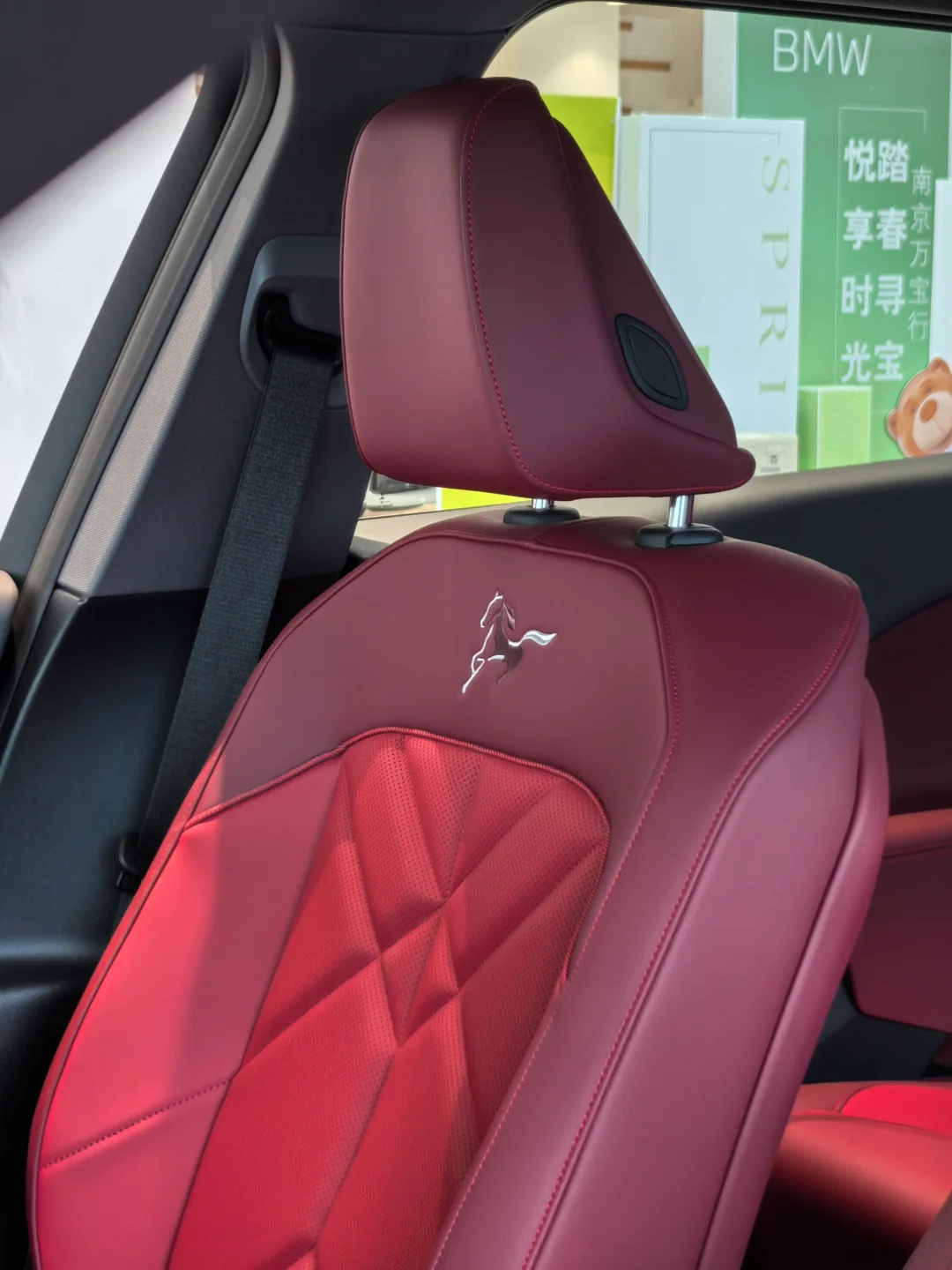 ✨以“磨砂宝石青”车漆诠释中式哲学——哑光质感将光芒敛于车身,纳八方财气,更守得住实力。 ✨熏黑轮毂与曜夜套装加持,愈黑愈显贵气,黑马之势,不彰自显。 ✨车内藏祥瑞。“马若乘空”红银双色刺绣Logo,以平包针与榻榻米工艺绣就,针脚细密,寓意实力非凡。赤焰红皮革内饰,红黑碰撞,气场全开。 ✨暗银色迎宾踏板,开门纳运,将“马到成功”的期许融入日常。