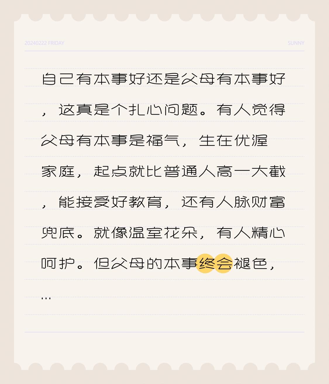 自己有本事好还是父母有本事好,这真是个扎心问题。有人觉得父母有本事是福气,生在优渥家庭,起点就比普通人高一大截,能接受好教育,还有人脉财富兜底。就像温室花朵,有人精心呵护。