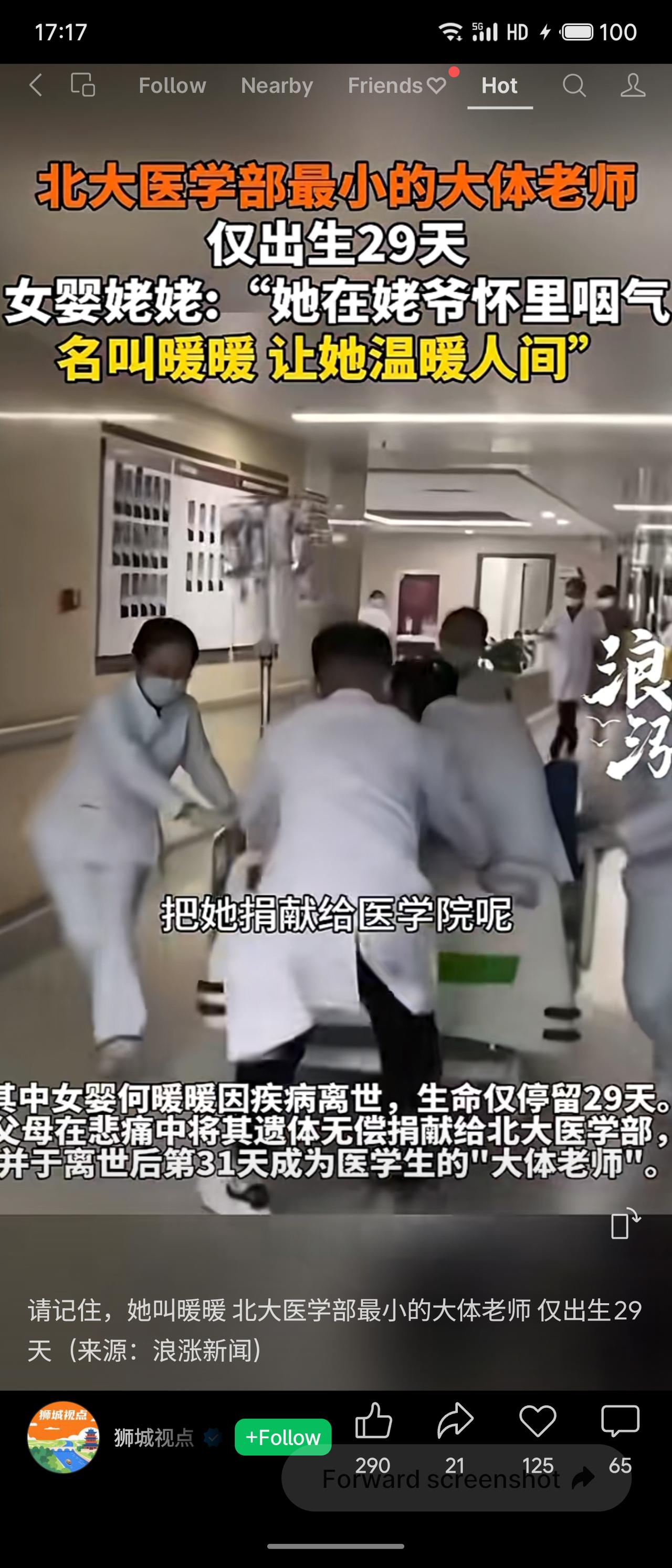 出生仅29天的女婴何暖暖因病离世,在姥爷怀里咽气。父母将其遗体无偿捐给北大医学部
