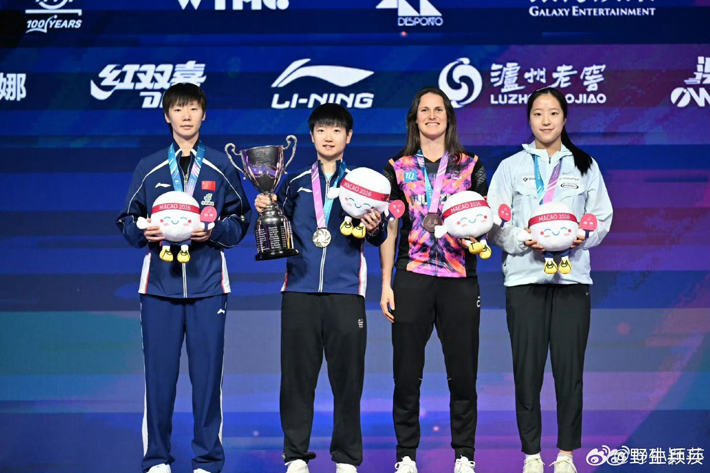 孙颖莎晒世界杯大合影孙颖莎说热爱永不停止赛后发博:很开心能在澳门世界杯再次拿下冠