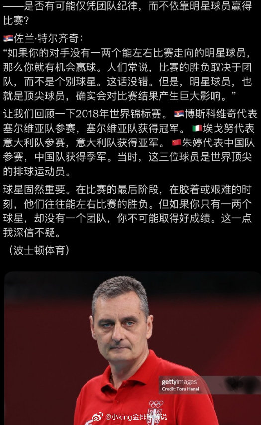 特尔季奇的采访稿。好教练必须是和好的心理学家。世界排坛资讯