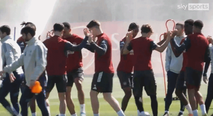 挺好的,四个人顶着球,别人就抢不下来了 阿森纳训练中玩起趣味小游戏,四名球员用头同时顶住一颗足球并保持前行,最终将球送入桶内。另一项游戏难度稍大,四人之间用手指互相支撑住笔,脚下还要保持控球和前行,整个训练气氛其乐融融 英超联赛 阿森纳著名教授