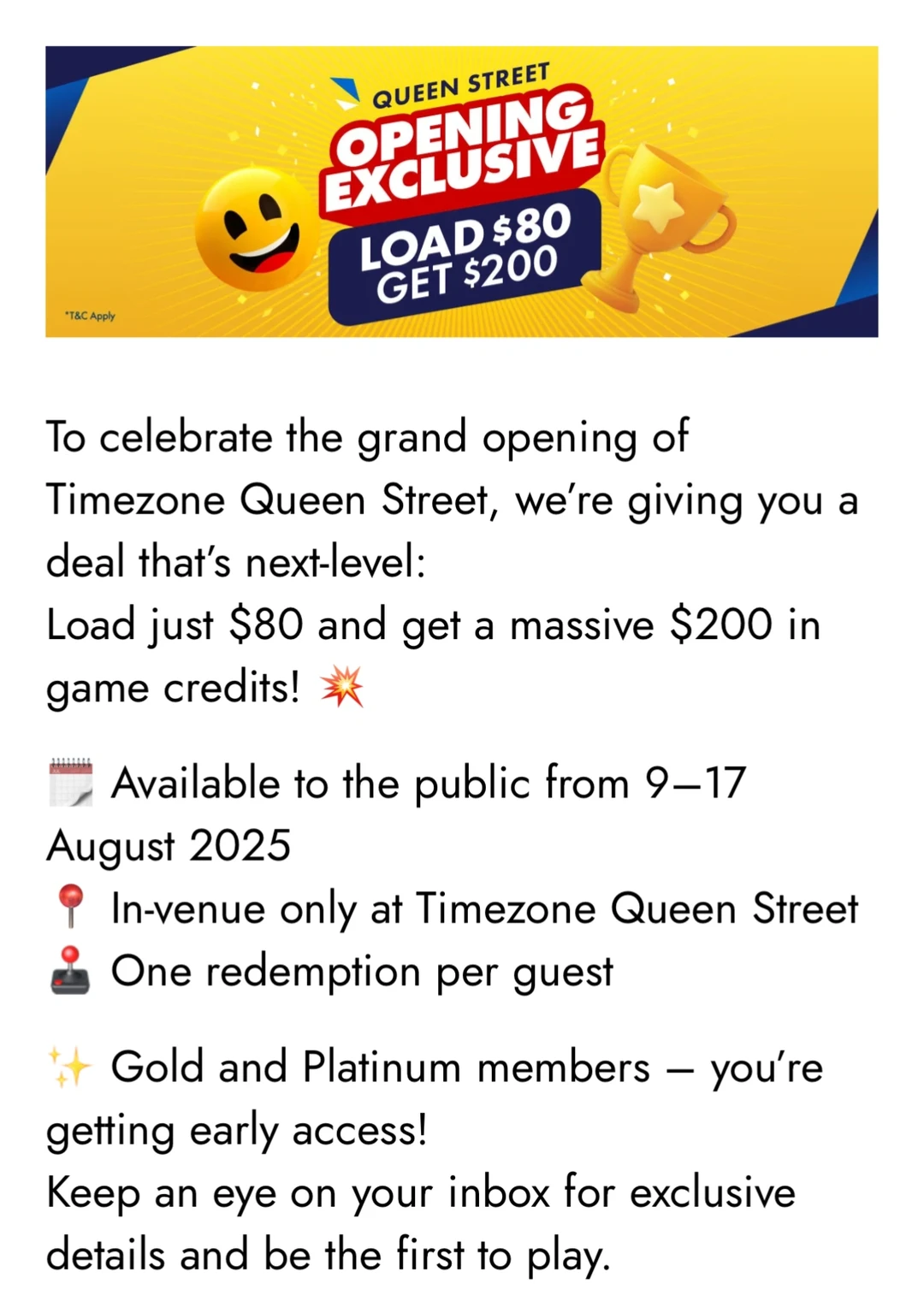 ✔️8月9 - 17日,充$80🉐$200,Gold和Platinum会员还能提前玩!