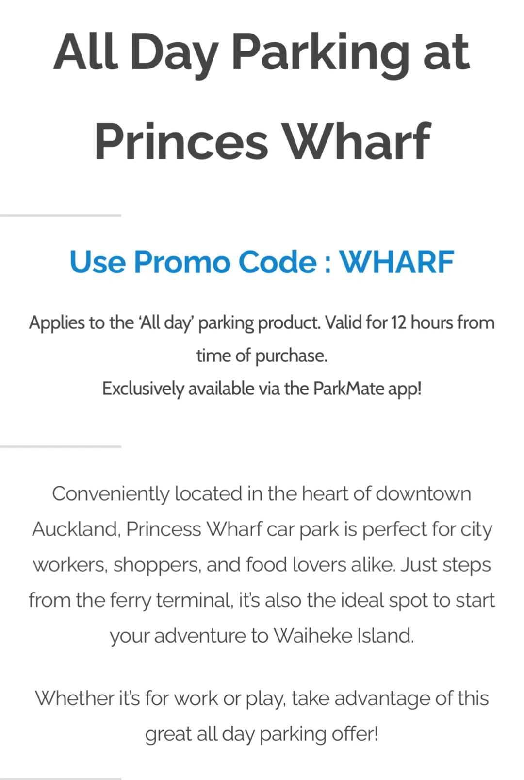 3.选“全天”停车产品,再选“WHARF” promo code