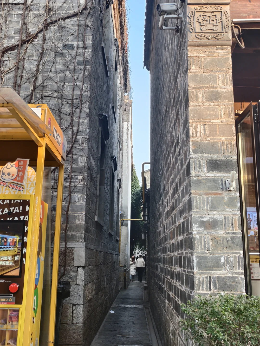 东门进入后直走看到德云社图[三R],旁边巷子深处直走图[四R],就是有名的“金陵打卡墙”。周六下午排队的人数没有想象中多,大概等待十分钟左右。