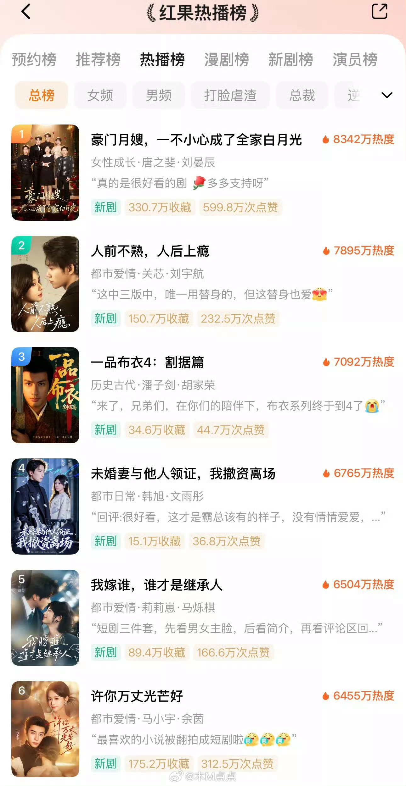 谁敢信?排名第一登顶的是Ai剧,下沉已经进化到部分真人播不过ai了!对AI和男频太好了,4如果是女频热度能上5k不…短剧虽然在走精品路线,但绝大多数下沉市场就是看个“下饭”,或者当成电子零食,这样的局面意料之中。。。。榜一是非常对下沉口味的~能打过真人剧很正常之前的榜一也就是现在的榜二也是非常对下沉口味所以逆跌在榜很多天,都是对下沉口味真人也没比ai高贵,下沉本来就不在意是ai还是真人,而且榜一这部剧如果真人拍要么很费钱要么拍不出这么热血,但是ai可以低成本做出高燃场景,能成为榜一挺正常!不过,榜一我点进去看了三集关了,我不爱看,但确实是下沉爱看Ai漫的评论区 有很多人问:有多少人有多久没看过真人剧的了,一堆点赞的