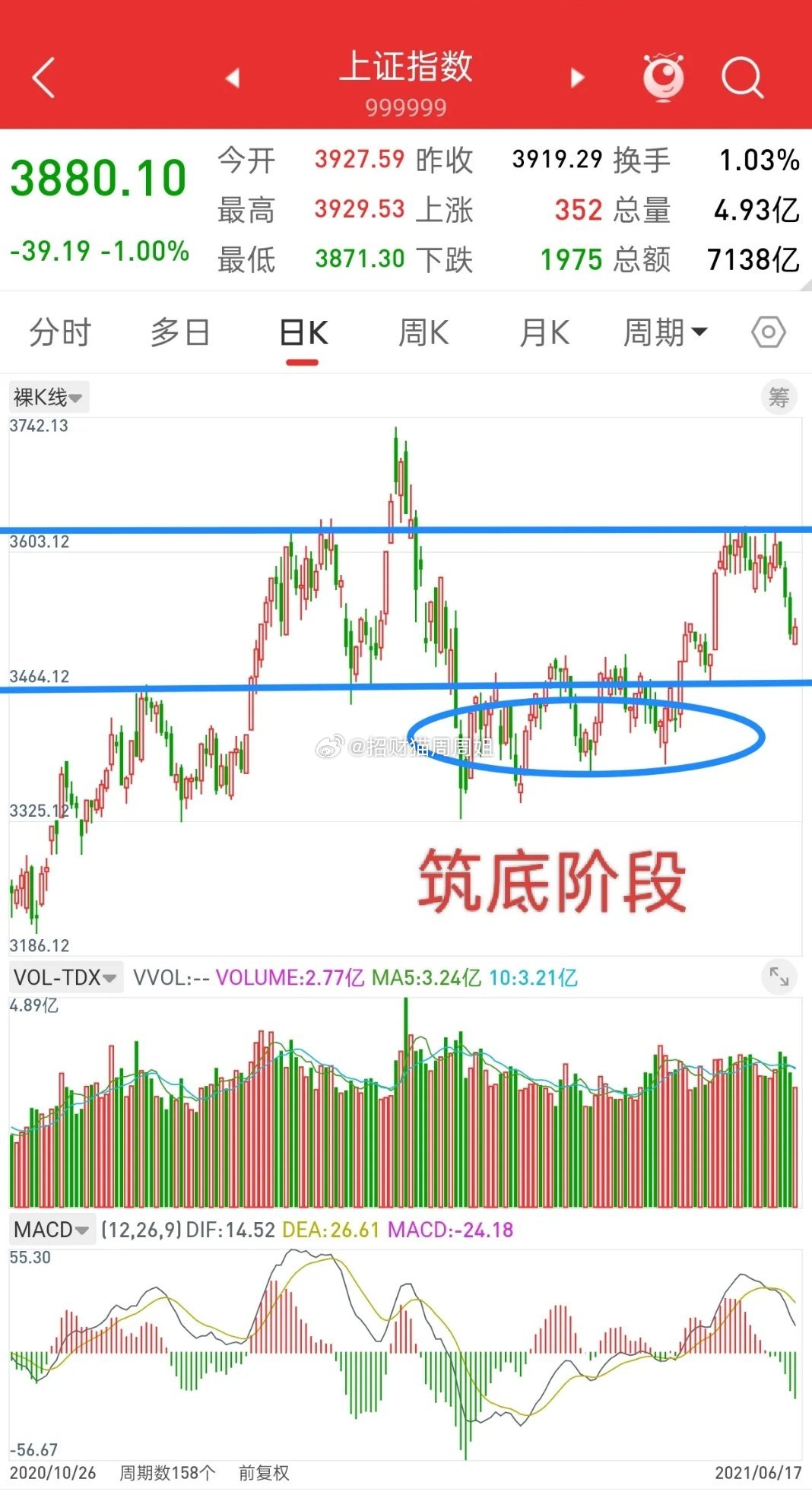 观点一直不变,现在就是大盘筑底阶段,既然是筑底,那就是说明现在已经是底部区域,无非就是反复洗盘。