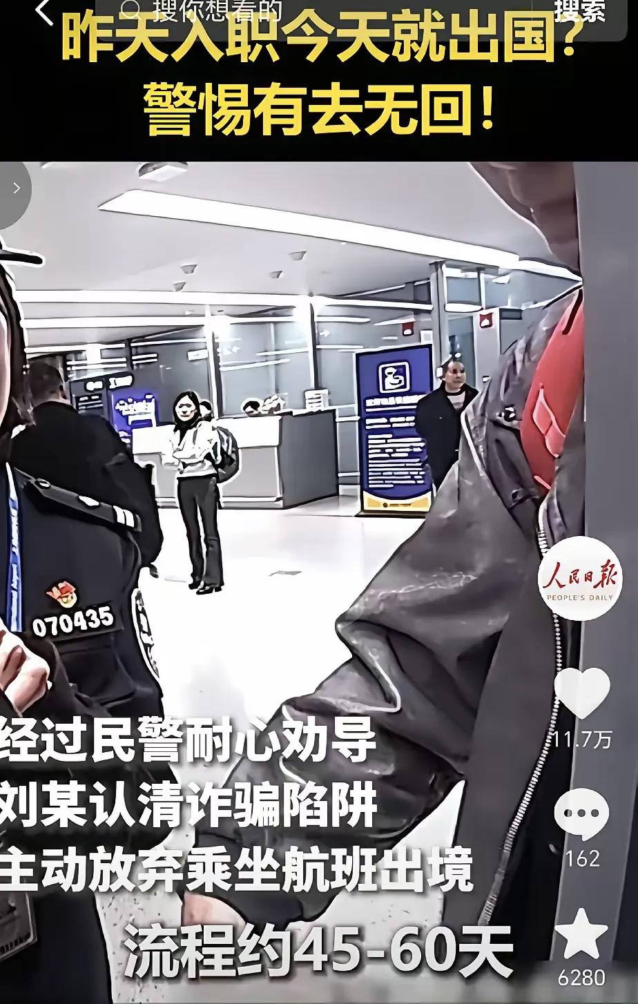 上海虹桥机场,一男子昨天刚入职,第2天就派他去境外出差,然后家里人打电话给民警,让他们帮劝阻一下,这样的公司肯定不正常,这才刚入职,就派去境外,是不是一去就不回来了。