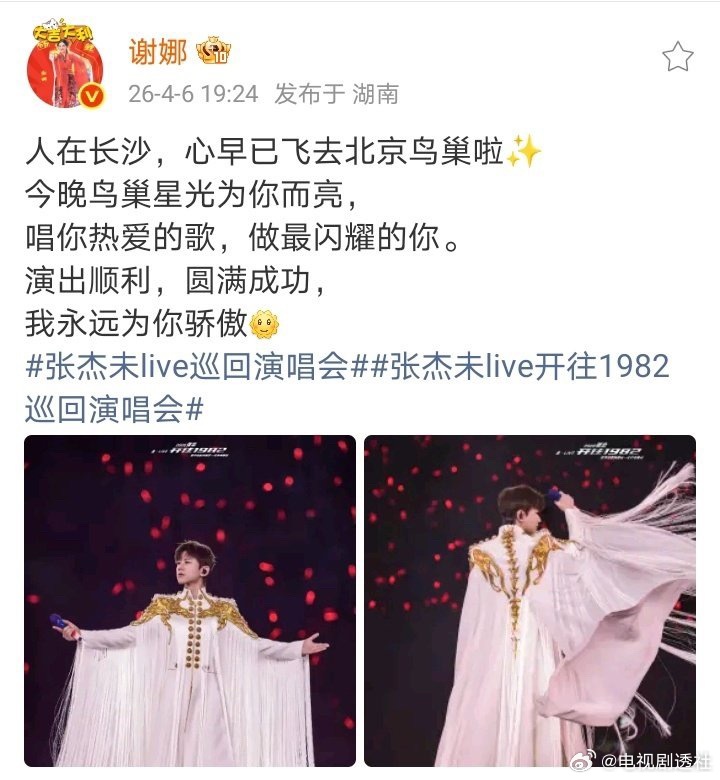 人在长沙,心早已飞去北京鸟巢啦✨今晚鸟巢星光为你而亮,唱你热爱的歌,做最闪耀的你。演出顺利,圆满成功,我永远为你骄傲谢娜对张杰说我永远为你骄傲谢娜永远为张杰骄傲谢娜人在长沙心早已飞去北京鸟巢啦