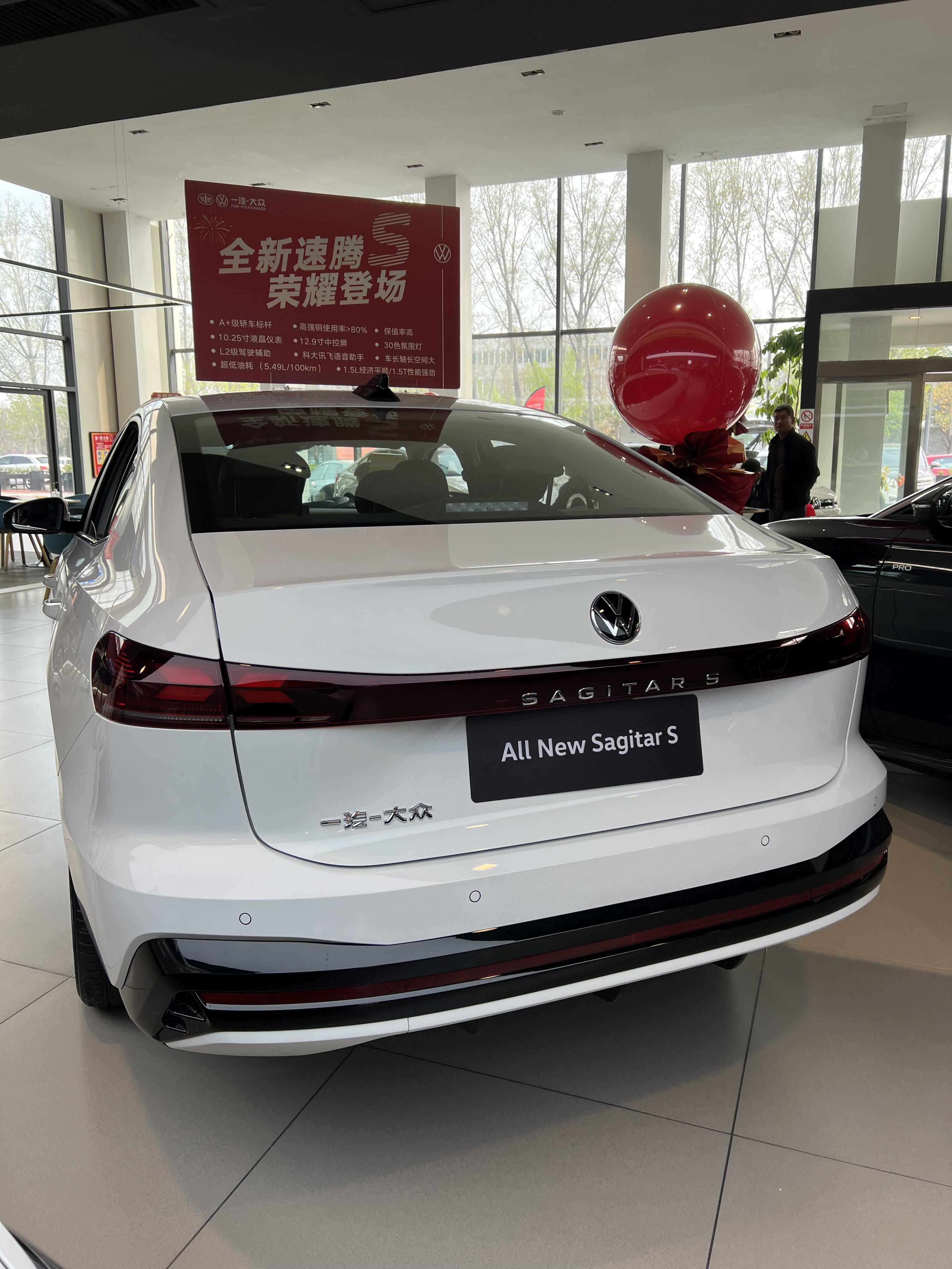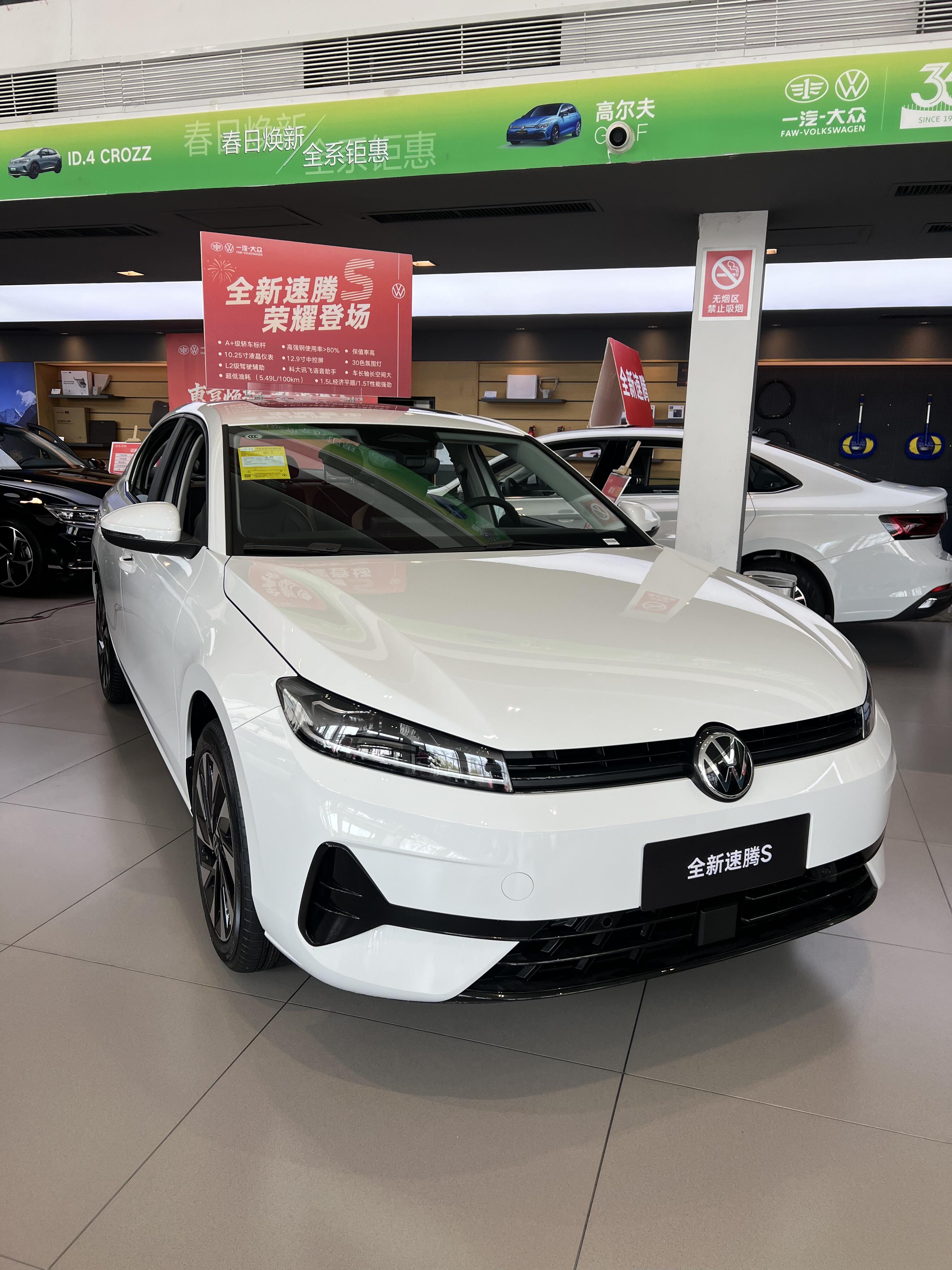 周末去4S 店试全新速腾S,刚到门口,实车就给了我个大惊喜,比图片精神太多!阳光下,溜背线条从车顶流畅滑至车尾,熏黑轮毂搭配得恰到好处,整车仿佛蓄势待发,连审美保守的老公都夸前脸精神。