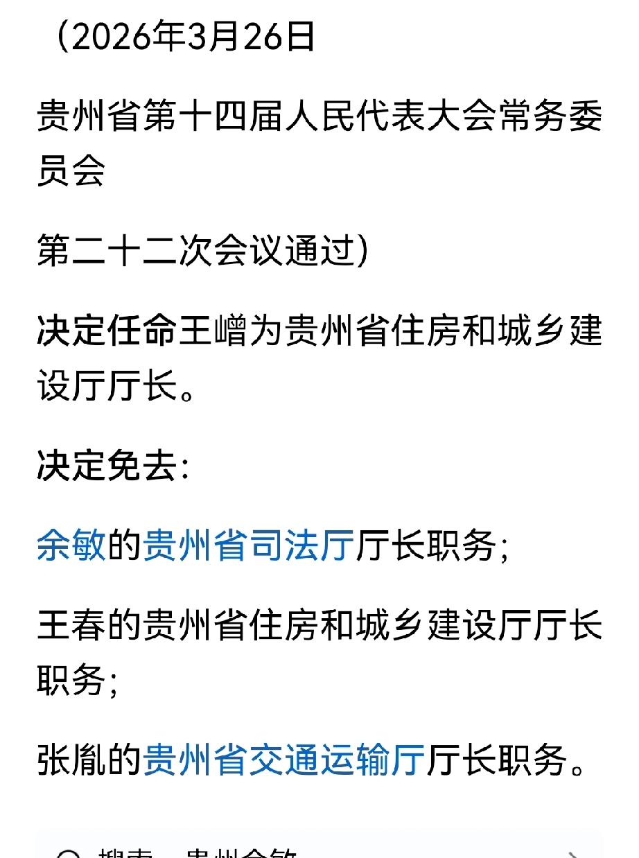 还有两个女的,一是3月27号官宣的张胤,另一个就是今天官宣的徐敏。免职前系贵州省司法部门正职。