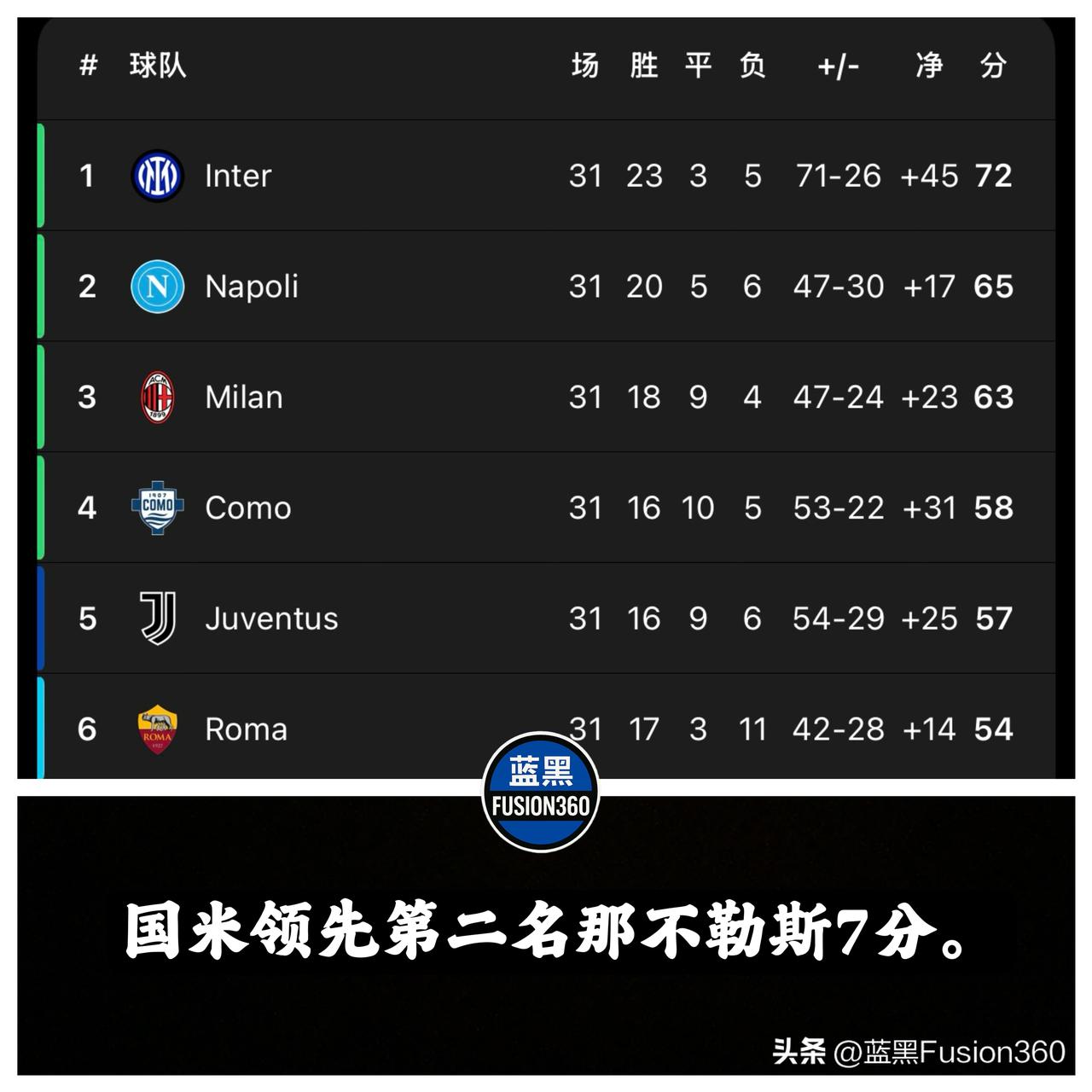 账面算下来,再拿15分就能稳稳捧起第21座意甲冠军。要是那不勒斯中途拉胯,这分数还能往下降。算分这事最容易让球员在场上分心走神,7分的底子容错似乎又高了,可咱们绝不能把这当成松懈的护身符。