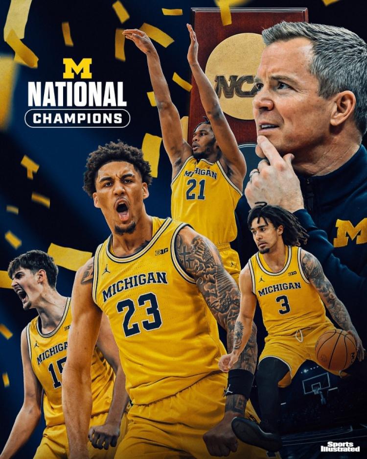 “疯狂三月”大结局! 他们终结37年等待,密歇根大学加冕队史第二冠! 康大无缘四年三冠壮举! 北京时间4月7日,NCAA决赛拉开序幕,康涅狄格对阵密歇根大学。 比赛重要性不言而喻,两支队伍看起来都较为紧绷,状态调动略显慢热。随着时间的推移,双方渐渐找到些许节奏,战术配合丰富起来。密歇根大学基本保持微弱优势,虽说上半场外线哑火,但内线冲击做得不错,频频造杀伤站上罚球线,约翰逊独得10分。康涅狄格大学表现平平,没有特别突出的发挥,马林斯手感冰凉,29-33落后四分进入中场阶段。 回到下半场的角逐,康涅狄格大学外线持续打铁,他们似乎没有任何改善策略,挣扎表现无法摆脱困境,随着时间的流逝,全队显得愈发急躁,拼尽全力追赶,可始终都没能抹平差距,希望变得渺茫。密歇根大学尽管投篮糟糕,但通过冲击获得更多罚球,最后面对疯狂的反扑顶住压力,69比63带走胜利,打破康大四年三冠的梦想,时隔37年,加冕队史第二座疯三锦标赛冠军。 康大全队外线33中9,罚球16中12,卡拉班投篮14中5得到17分+11板,马林斯17中4贡献11分7板,里德13分+14篮板。密歇根大学三分15中2,但罚球28中25,卡多19分。