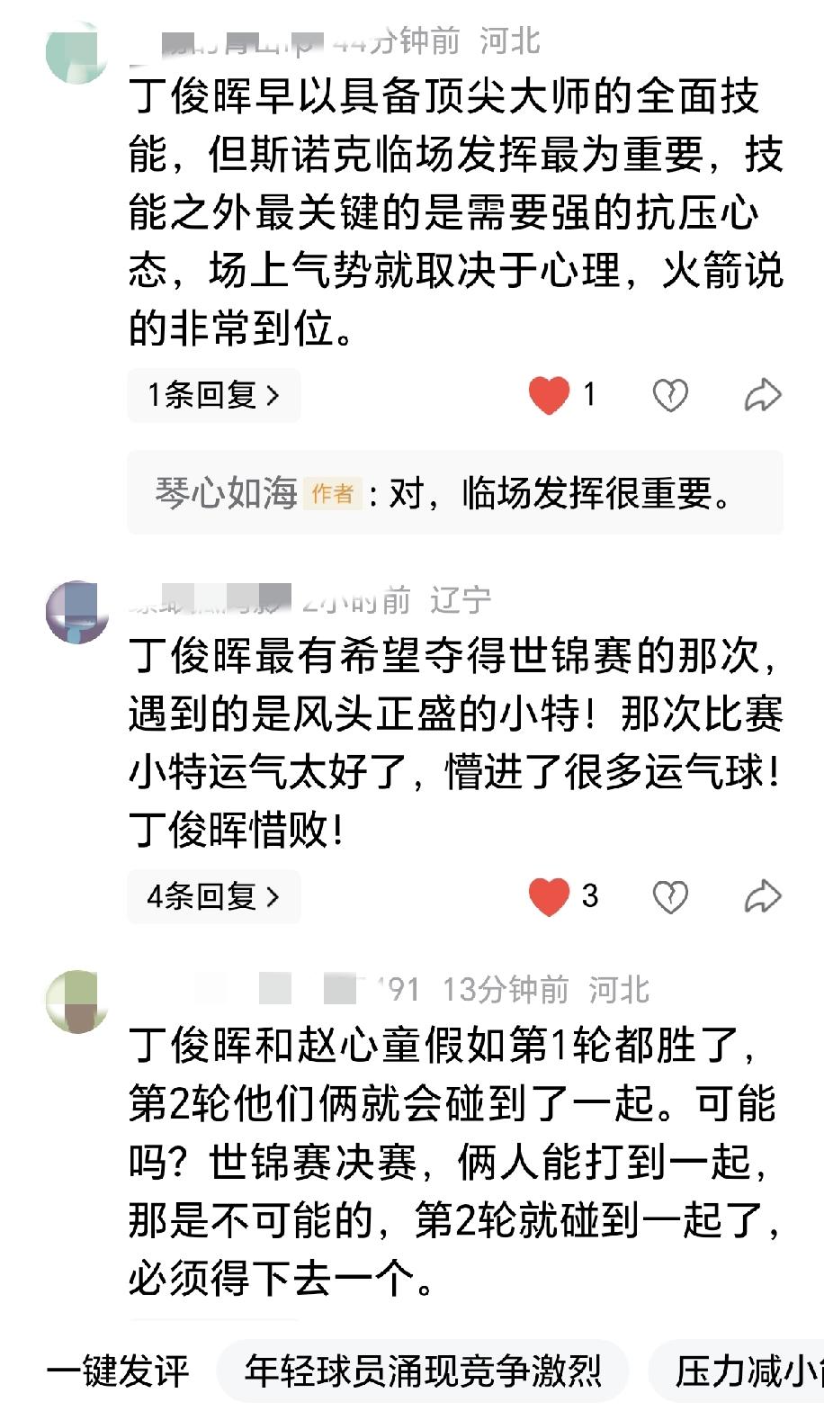 很欣慰,大家对丁俊晖的评论终于回归理性,平和,没有了以往的嘲讽、奚落和谩骂,更多的是祝福和期待。 作为“80五虎”之一,丁俊晖有属于自己的荣光和骄傲,虽然近几年成绩一般,但排名能长期位居世界前16名,说明丁俊晖总体的状态其实还是不错的。 至于说在即将开始的世锦赛能走多远,临场发挥很关键,当放下了所有的包袱,轻装上阵,只专注比赛,丁俊晖还是很值得期待。