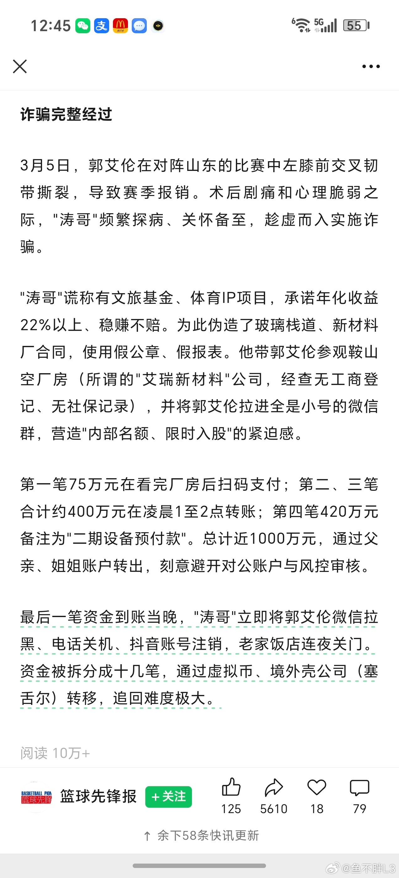 郭艾伦被骗上千万的具体细节。据国内媒体透露,郭艾伦被骗是其身边好友以投资入股为名