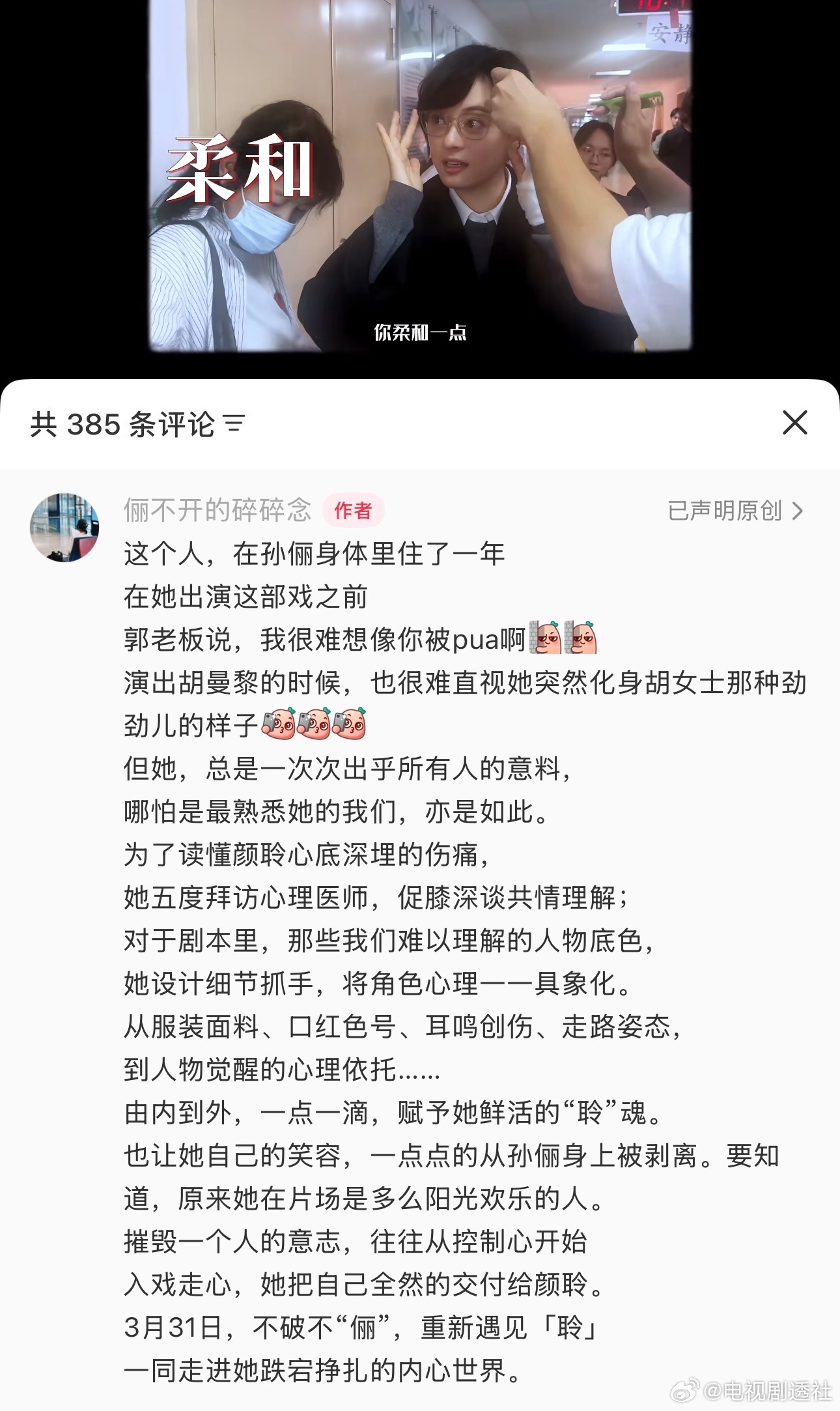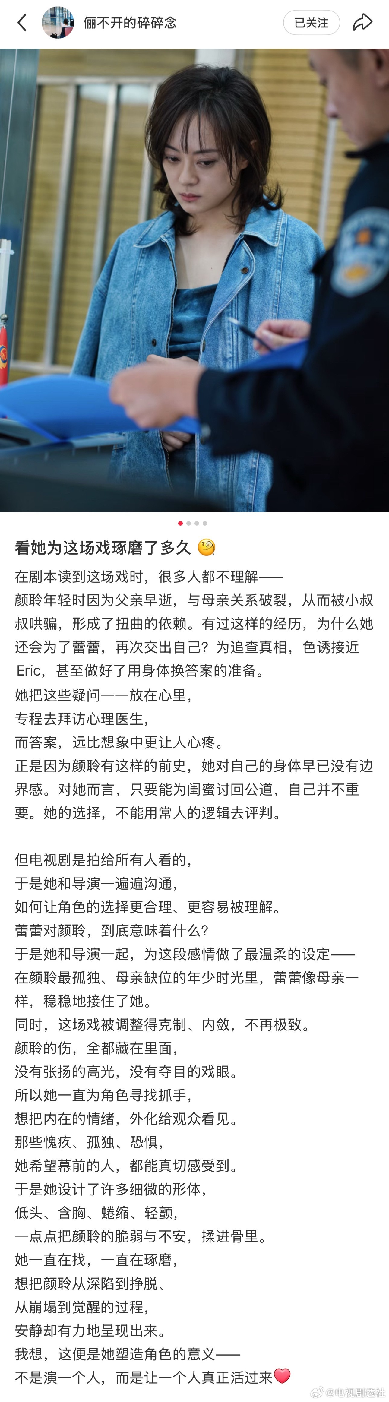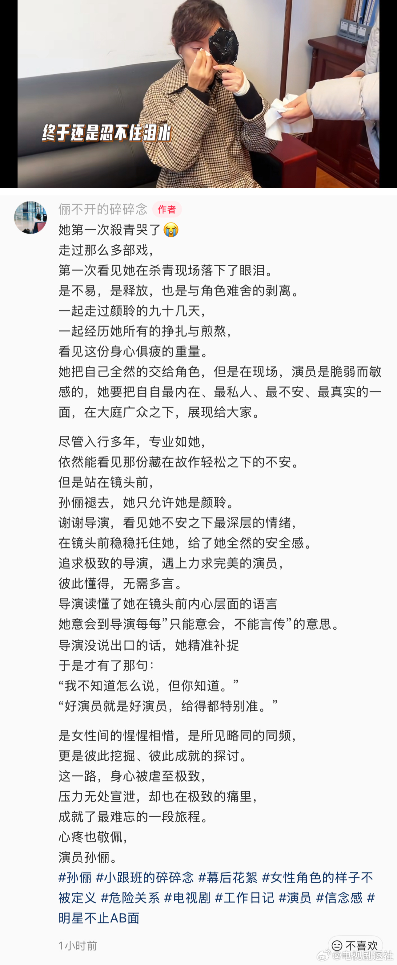 孙俪小助理好爱孙俪!好动人的文字表达,透过小助理的文字也能感受到孙俪对颜聆这个角色的爱!