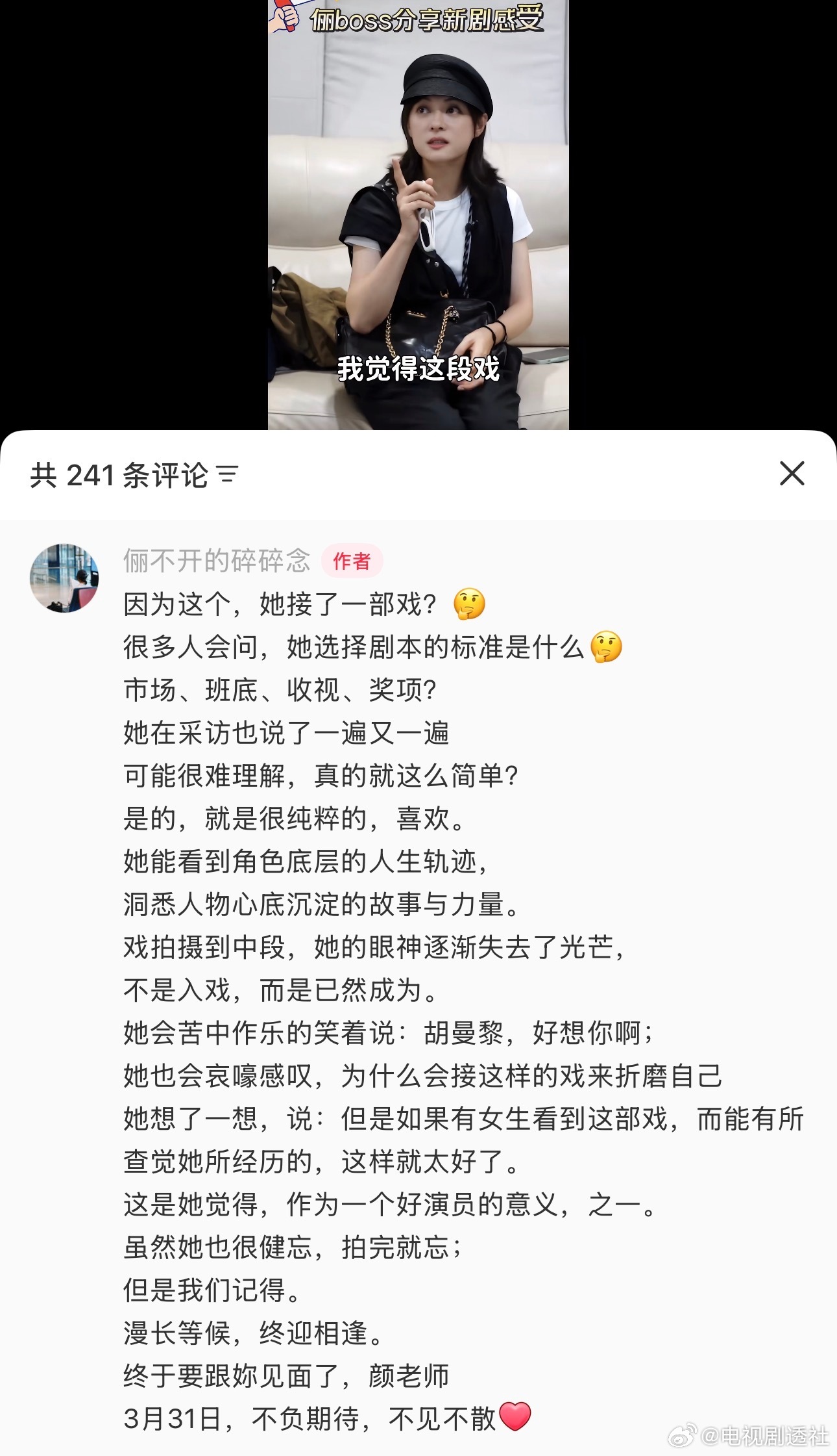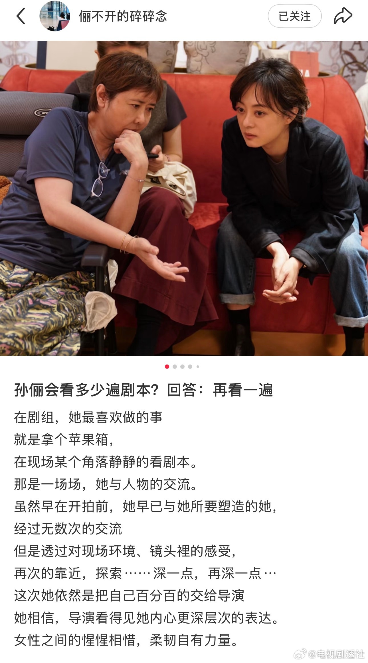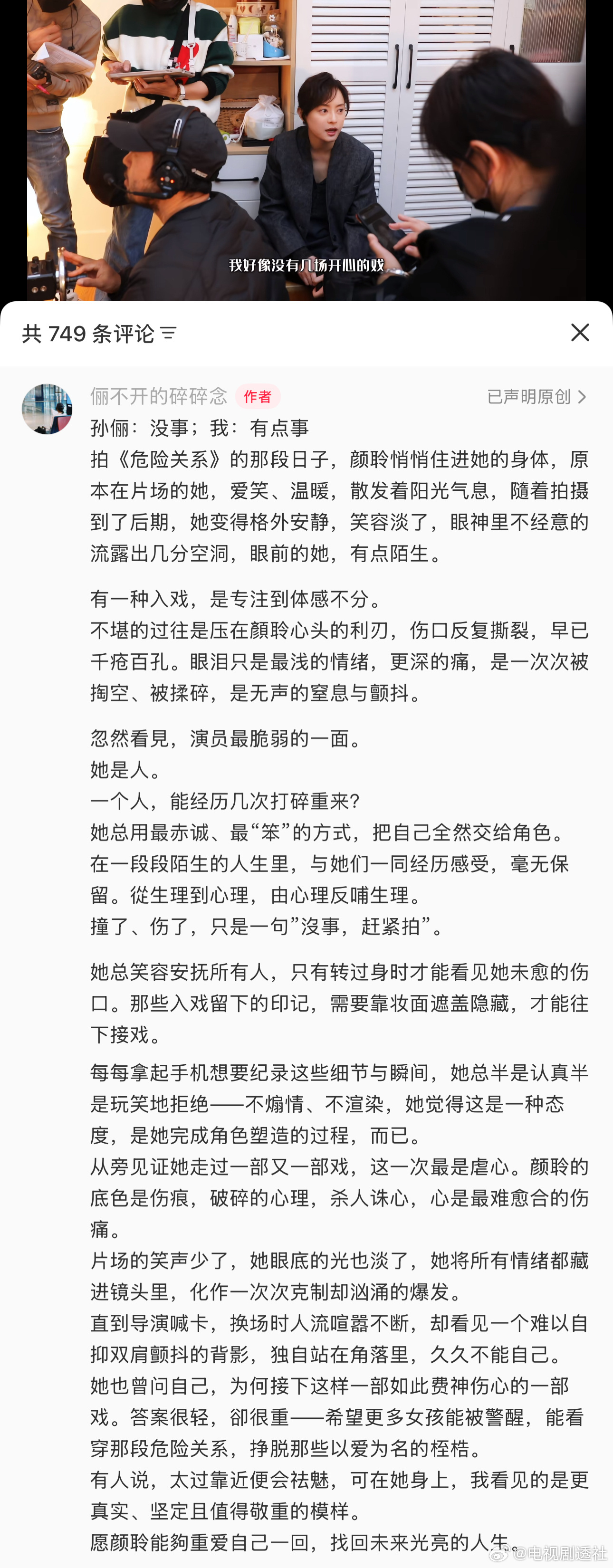 孙俪小助理好爱孙俪!好动人的文字表达,透过小助理的文字也能感受到孙俪对颜聆这个角