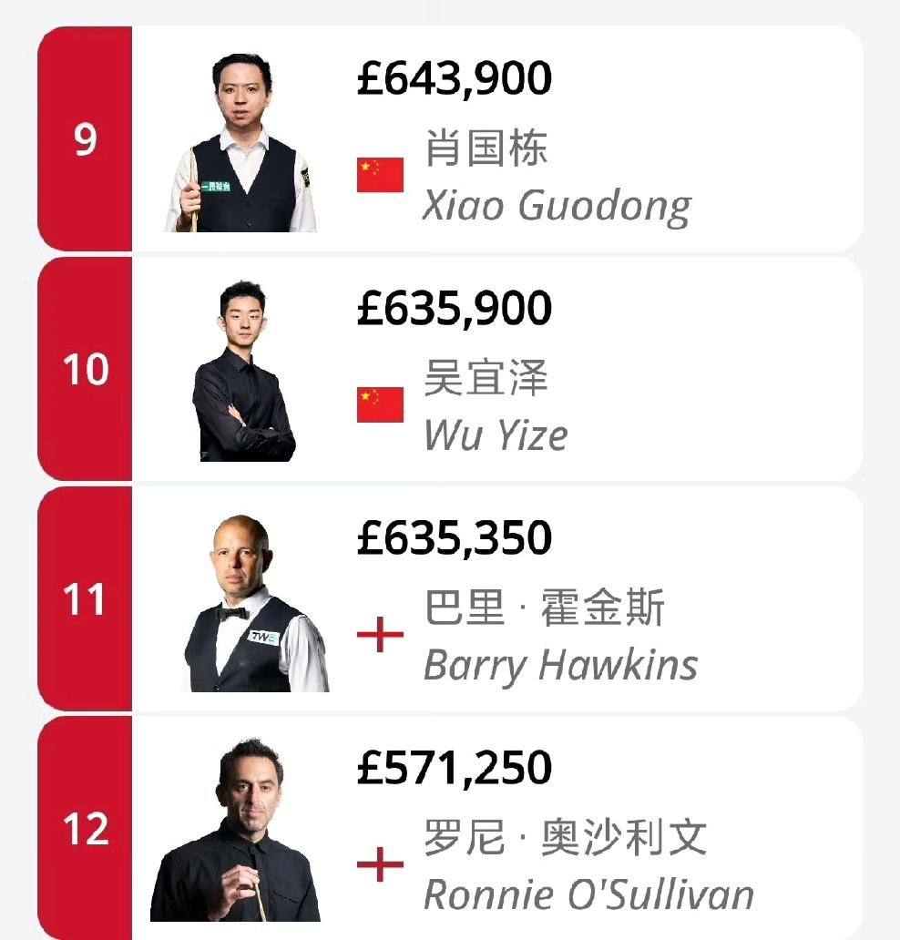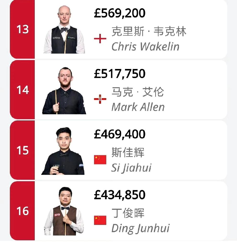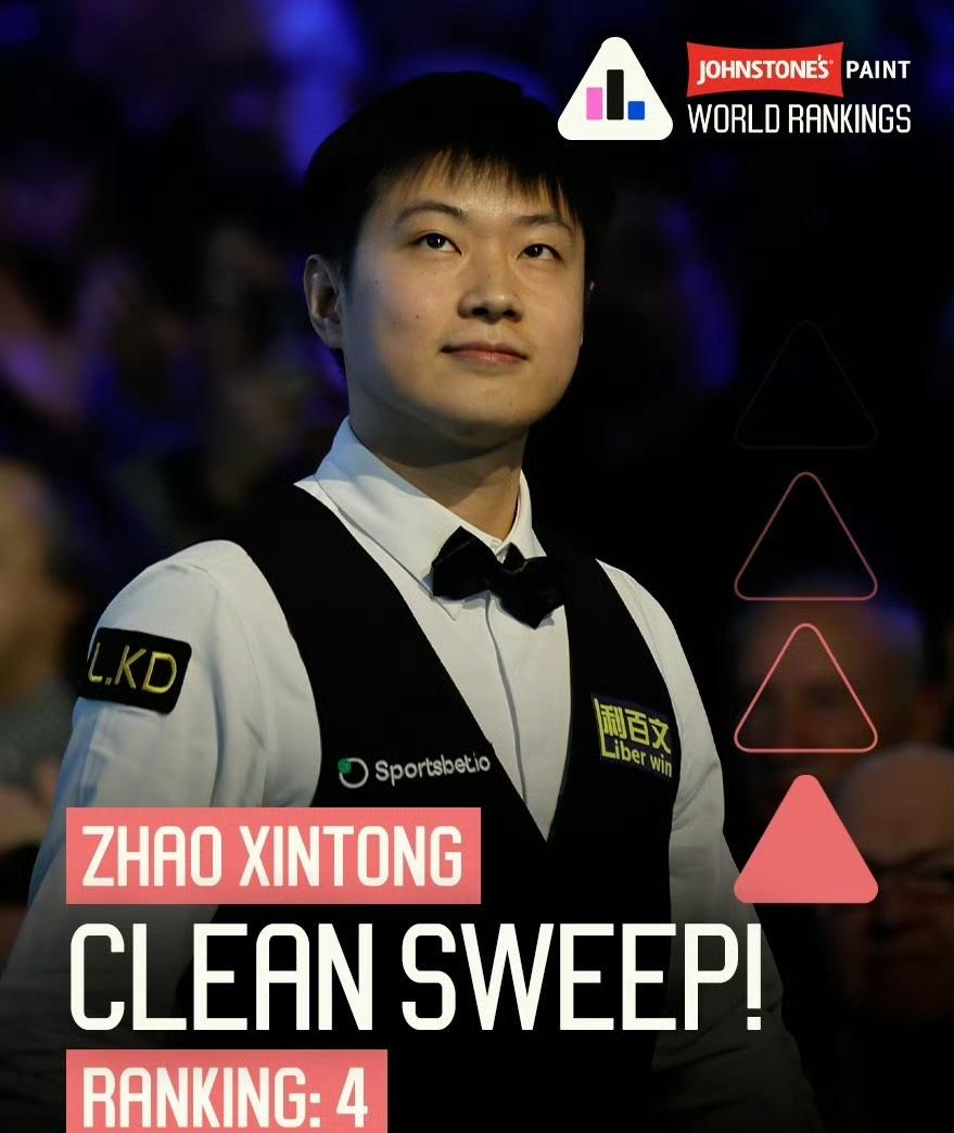 赵心童世界排名来到第四位! 2026年斯诺克巡回锦标赛结束后,赵心童的世界排名来