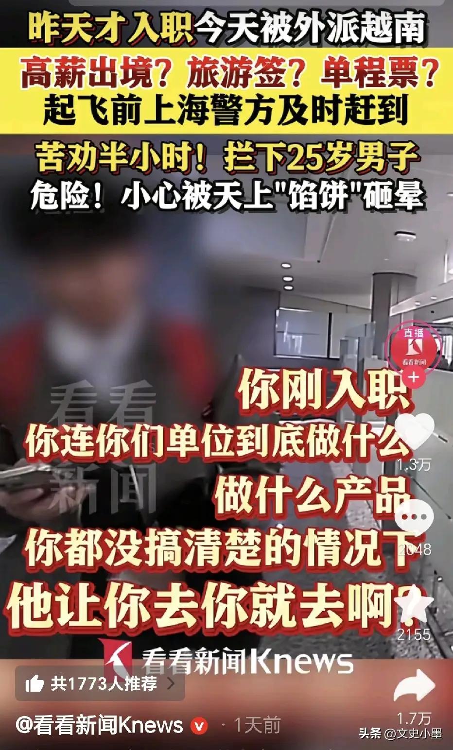凌晨四点,他做了个疯狂的决定:报警,然后直播。他把身份证、录用通知、机票信息全摊在镜头前,声音哑得像砂纸磨铁:"我叫刘某,25岁,明天本该去越南'接管项目'。但我查过了,那家公司注册地址是虚拟的,法人是个七十岁老太太,而给我办签证的中介,上个月刚被曝出和缅北园区有往来。"弹幕炸了,有人骂他想红想疯了,更多人刷屏:"别去!那是电诈!"