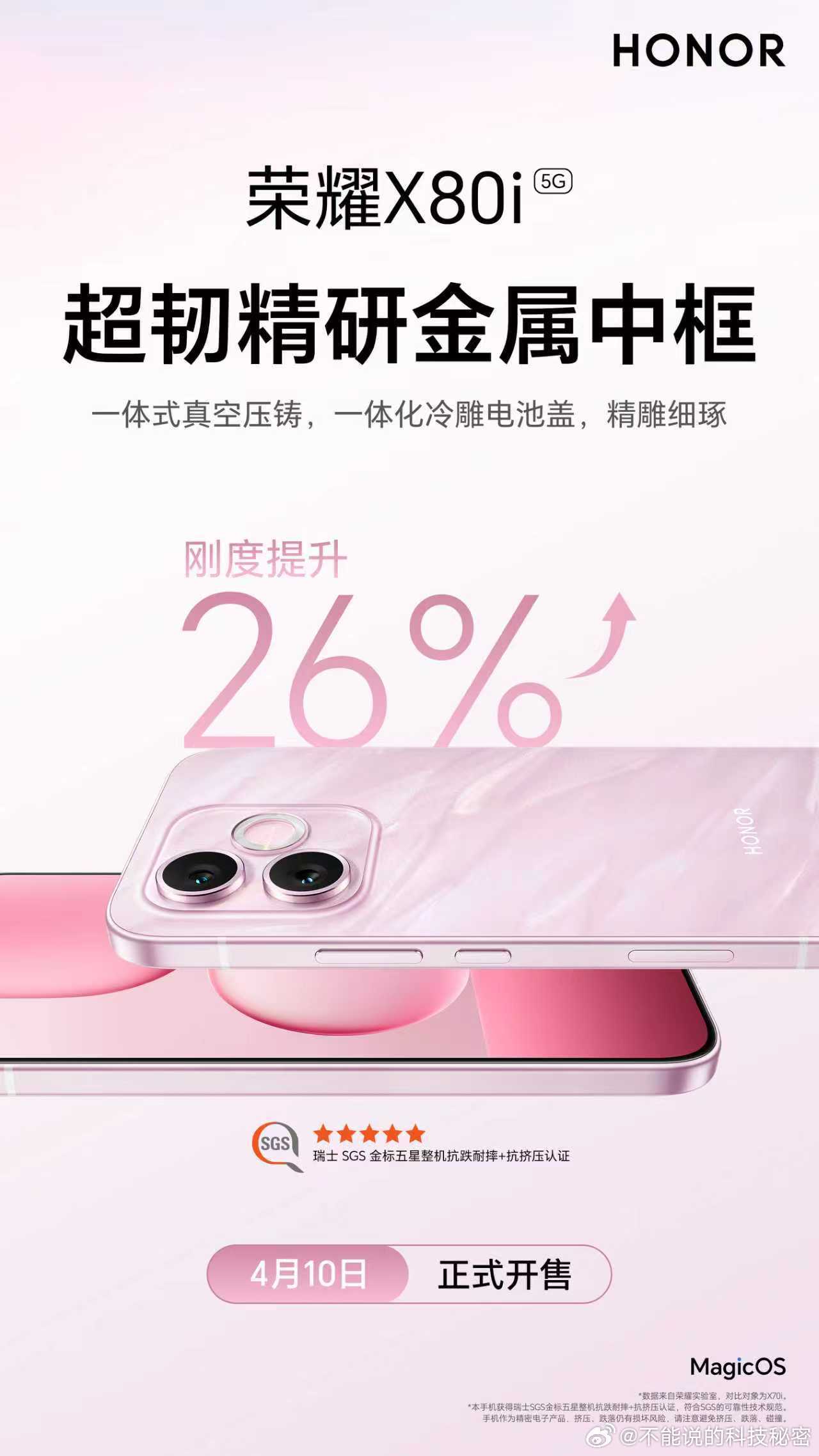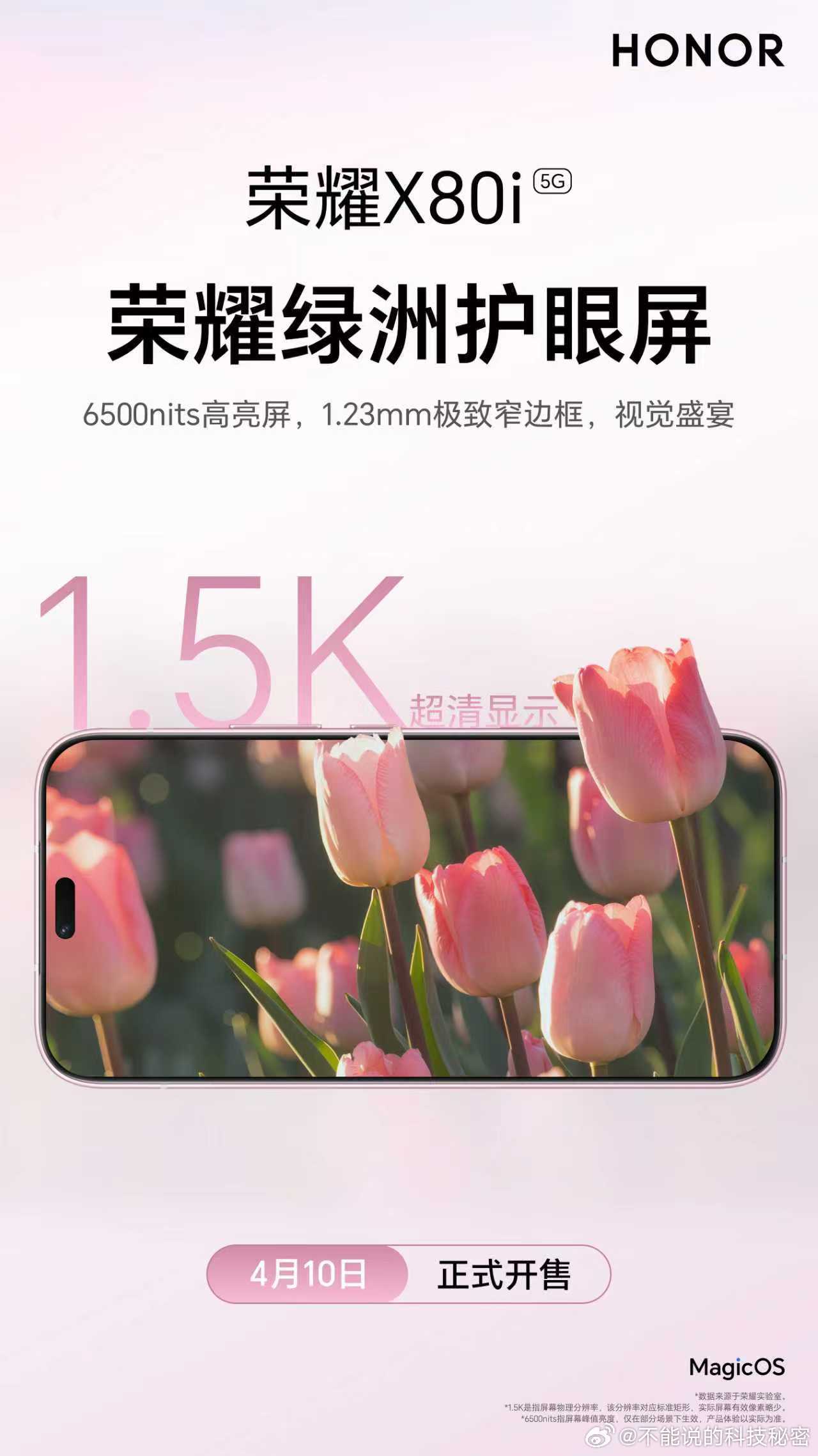 荣耀X80i 这也太适合户外用户使用了!新品上市!超韧精研金属中框,好看更坚固;1.5K超窄边荣耀绿洲护眼屏,大屏更舒适;7000mAh超长续航大电池,持久更耐用。4月10日正式开售,敬请期待!