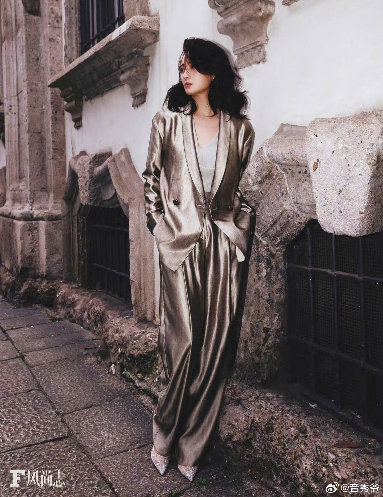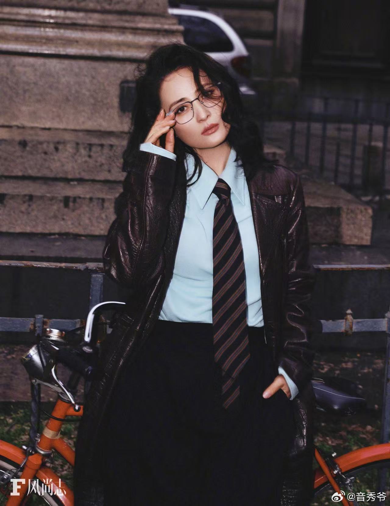 蒋勤勤酷飒风高智感蒋勤勤米兰封面气场全开,打破温婉古典印象,利落造型搭配锐利眼神