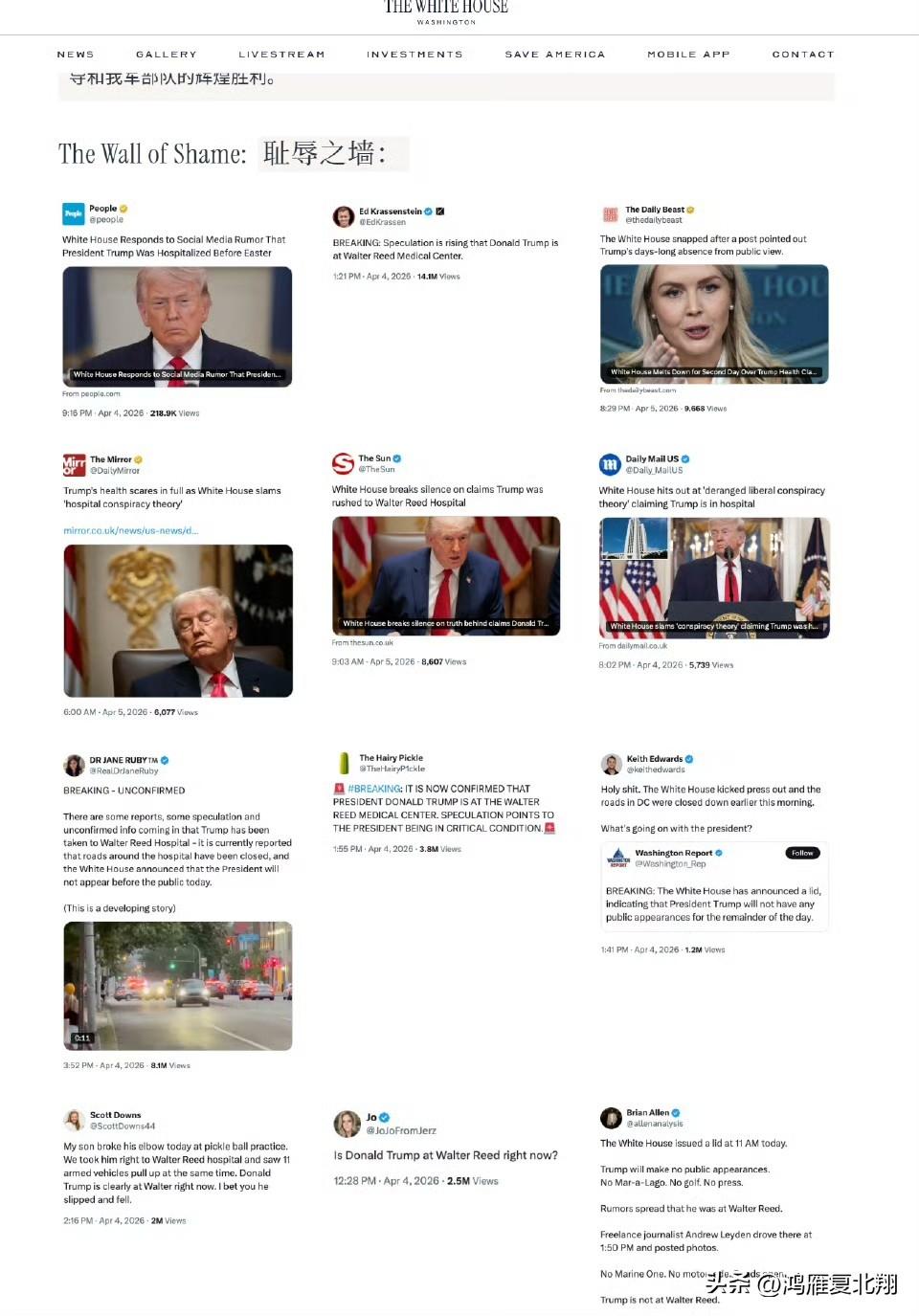 白宫官网消息首页挂了几十个媒体和民主党大V指责这些美国造谣,特朗普当时正在英勇指挥救人,结果这些左派媒体疯狂污蔑