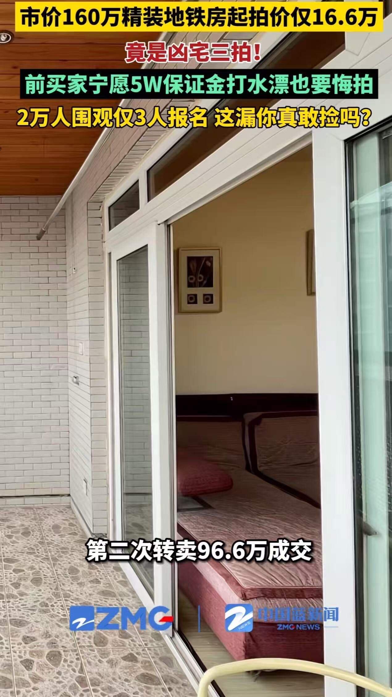 “这漏你敢捡吗?”市价160多万的89.7㎡精装地铁房,起拍价仅16.6万!竟是凶宅三拍!前买家宁愿5W保证金打水漂也要悔拍,2万人围观仅3人敢报!网友:这么说吧,凶宅其实没那么可怕,可怕的是同一个凶宅接二连三的拍卖,你猜是为什么? 这桩看似“天上掉馅饼”的拍卖房,背后隐藏的故事,远比你想象的复杂。一个接一个的流拍,不仅让这套原本价值不菲的地铁房价格一路“跳水”,更让无数围观者心生疑窦:这里究竟发生了什么? 首先,咱们得搞清楚,为什么这房子会被定义为“凶宅”?凶宅的标签,一旦贴上,市场价值立马腰斩甚至更惨。没人愿意住进一间曾发生过不幸事件的房子,毕竟心理阴影难以抹去,再加上邻里传言、风水迷信,各种看不见的“附加值”让房产价值大打折扣。 但这套房子更让人心惊的是,它不仅是一拍流拍,二拍、三拍也无一成交!这背后,透露出一个更深层次的现实困境——凶宅的“劣质资产”属性,已经让它成为市场上的“烫手山芋”。谁都不愿意冒着巨大的心理压力和未知风险去接盘。 更有意思的是,前买家宁愿5万元保证金打水漂也要悔拍,背后到底隐藏着怎样的恐惧和无奈?这不仅是对房屋本身的忌惮,更是一种对未来居住环境安全和精神状态的担忧。毕竟,谁也不想花大价钱买个“心理包袱”,天天提心吊胆。 网友的评论一针见血:“凶宅没那么可怕,可怕的是它一次次被拍卖还没人买。”这不仅是对房产市场的调侃,更是对社会心理和市场供需的一次深刻揭示。房子是家,是心灵的港湾,当这个港湾被阴影笼罩时,理性和情感的天平瞬间倾斜,买卖双方都陷入了尴尬的博弈。 这背后,更值得深思的是,面对“凶宅”这一特殊资产,法律、市场和社会应该如何平衡信息披露、心理疏导和价格合理性?是否有更科学、更人性化的方式,让这些房产回归市场,避免资源浪费和社会恐慌? 接下来,我们将深入解析这套“地铁凶宅”的前世今生,揭秘它为何屡拍不出价,以及凶宅市场背后的潜规则和买家心理。你,敢不敢跟着我们一起揭开这层神秘的面纱?别眨眼,精彩马上揭晓!凶宅成交 全款房遭拍卖 凶宅竞拍 凶宅流拍 深圳凶宅拍卖 凶宅捡漏 北京凶宅购房案