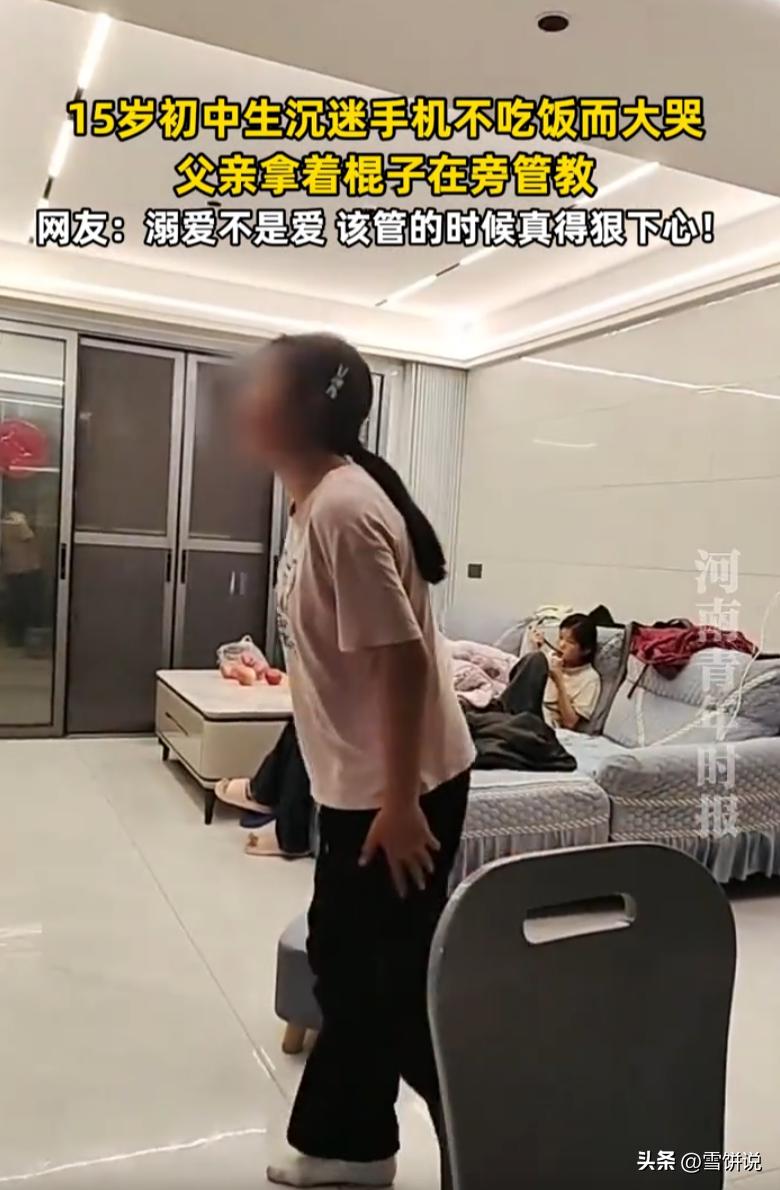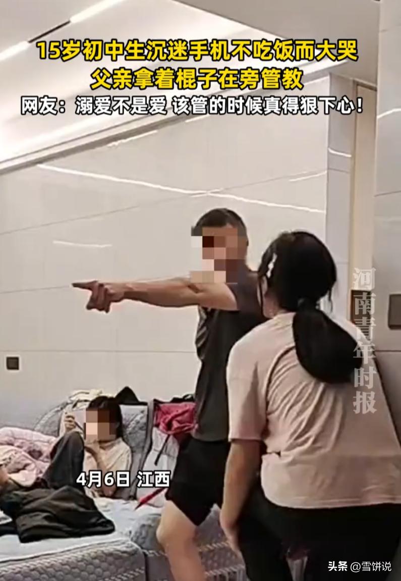 该不该打?江西,一名15岁初中生沉迷手机,一家人饭菜做好后却不上桌吃饭,父亲一气之下,拿出棍子来管教,看到孩子嚎啕大哭,有人支持,也有人提出了反对 当时,一家人忙活半天,饭菜端上桌,热气腾腾的。父母喊孩子吃饭,15岁的初中生窝在沙发上,眼睛钉在手机屏幕上,一动不动。喊第一声,没反应。喊第二声,嗯了一声,屁股没挪。喊第三声,父亲火了 既然敬酒不吃吃罚酒,父亲直接掏出一根木棍就教育起来 这一幕被拍下来后,也引起了不少讨论 有网友说:好可怜的孩子啊!一辈子的阴影!挥之不去!怎么会有这种父母! 也有网友认为:溺爱并不是爱,有时候就应该下狠心,不然就会养成坏习惯 这个父亲错了吗?从法律和教育的角度说,打孩子肯定不对。但从一个普通父亲的处境想,他可能已经被逼到墙角了。每天上班挣钱养家,回来还要做饭,孩子连上个饭桌都不肯,喊几遍不动,换谁心里都不好受。棍子落下去的那一刻,打的可能不只是孩子,还有自己的无力感 老一辈人常说,棍棒底下出孝子。这话不完全对,但也不是全无道理。关键是看为什么打、怎么打。江西这个父亲,不是为了出气,不是为了发泄,是因为孩子最基本的规矩都没有了。他打的是孩子,疼的是自己的心。哪个当父母的,打孩子的时候自己不难受? 可有些规矩,不靠疼是记不住的 男孩沉迷手机不吃饭 父亲拿棍管教