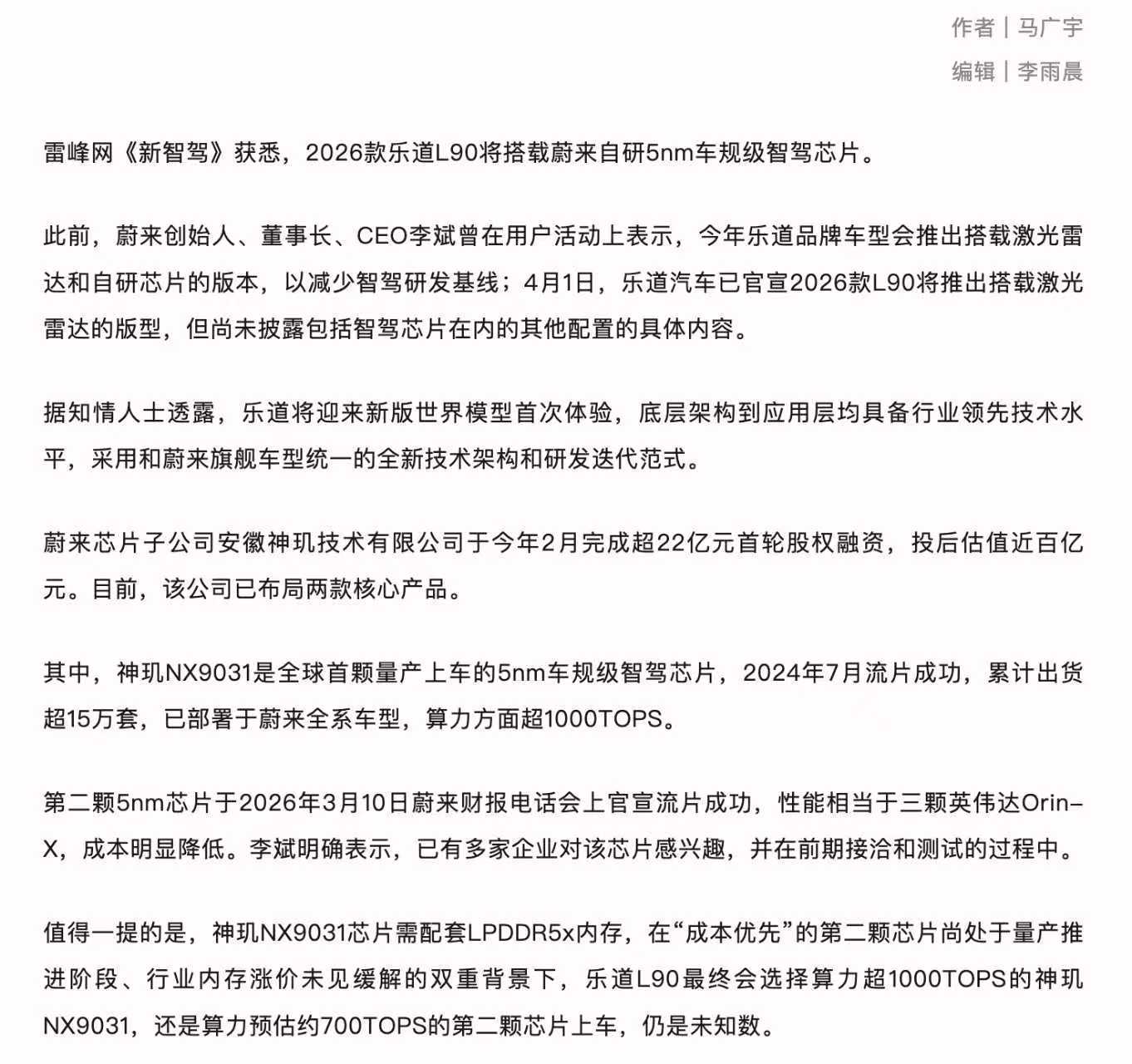 来了~2026款乐道L90就要来了!确定有搭载激光雷达的版本,芯片目前则有两个方案: