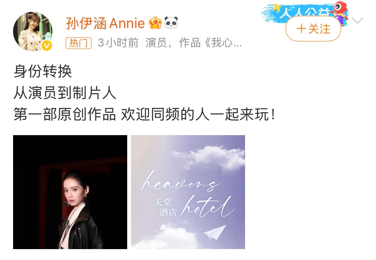 孙伊涵第一部原创作品孙伊涵转型制片