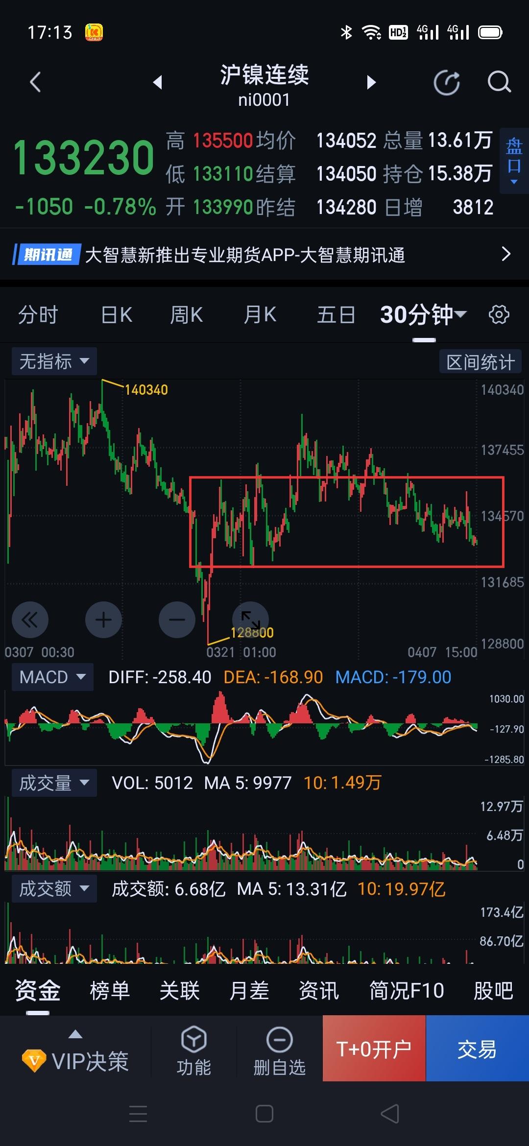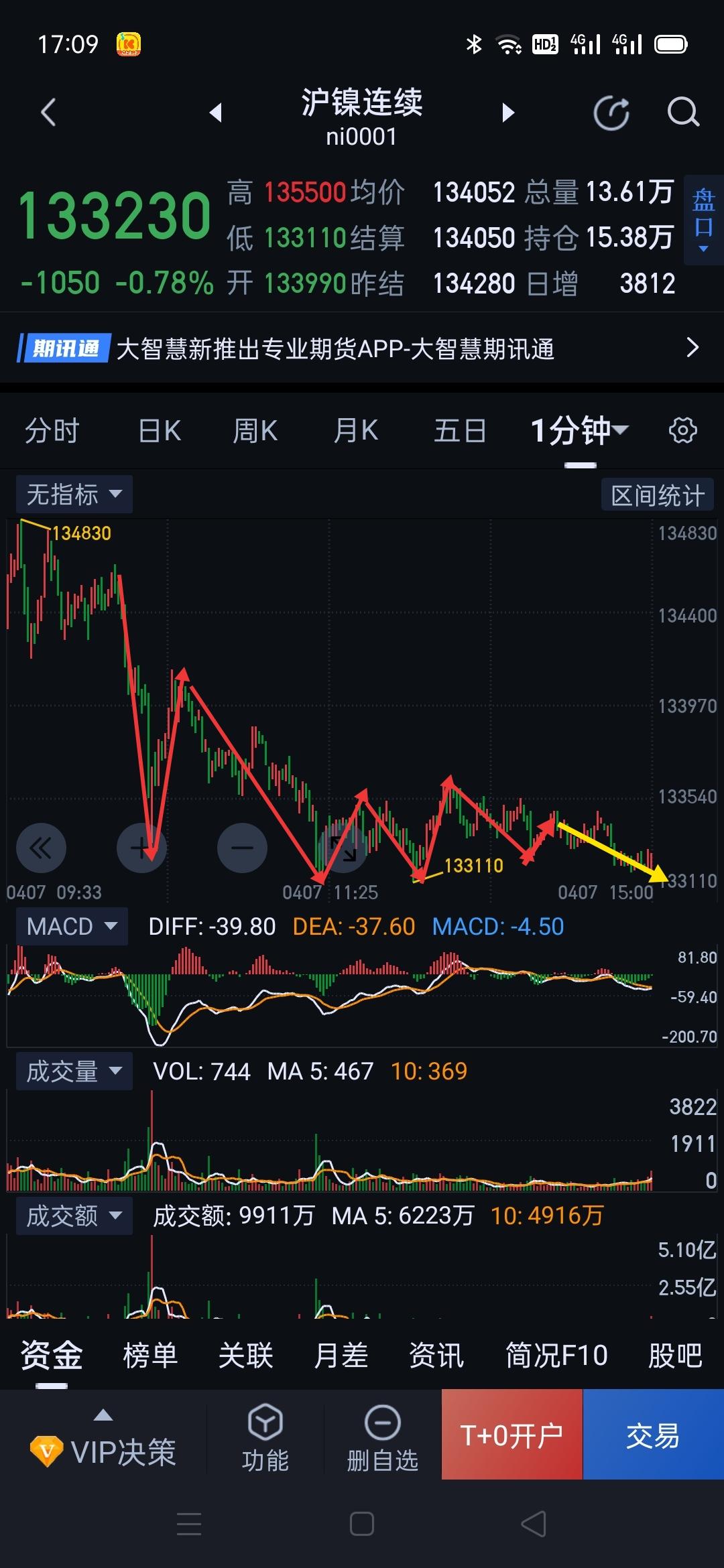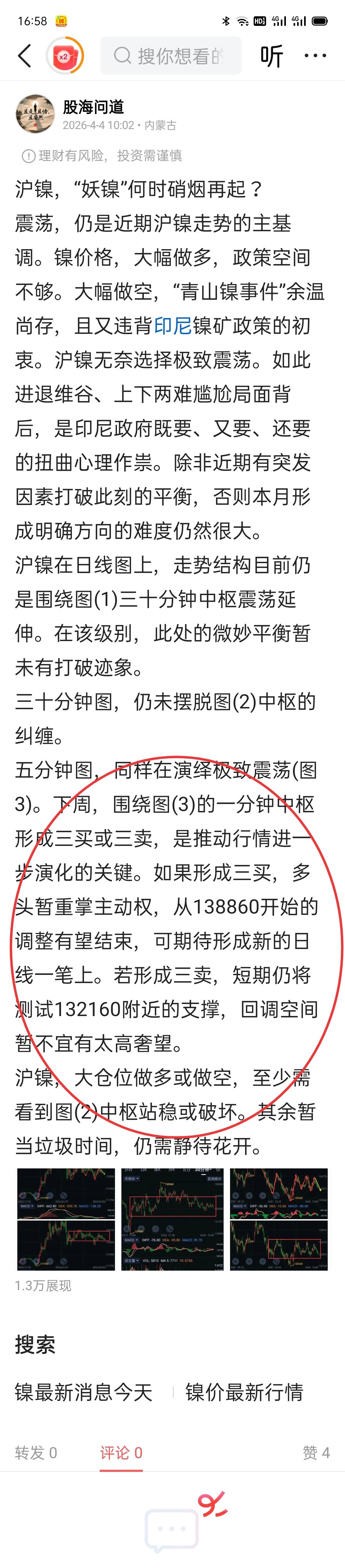 沪镍, 走势依然拧巴,短期没有着力点,可操作性不强。 沪镍夜盘观察能否形成图(1)三卖。若三卖形成,短期目标可看图(3)中枢下沿附近。若未形成三卖,暂用图(1)中枢视角观察。