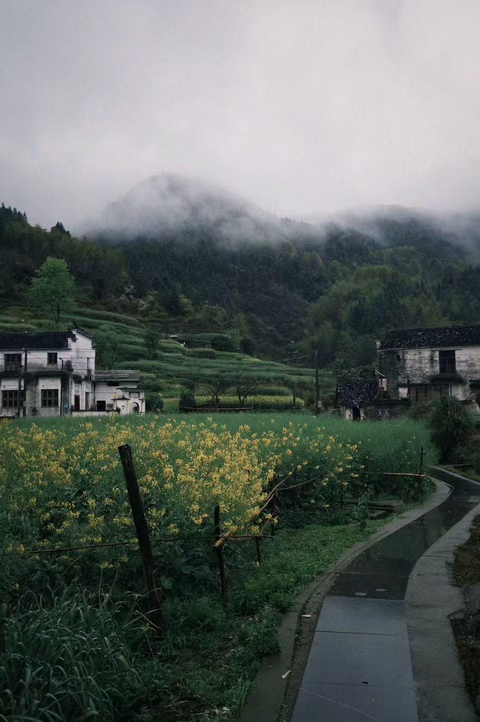 婺源逛村落继续,龙尾村出来到庆源古村,一路往山上开,感觉如果没有这条盘山公路,应该很难到达这里,所以这里有小桃源和世外桃源的美称。 庆源古村位于婺源四面环山最深处,古村已有千年历史,这里也是詹天佑的祖籍地,所以当地很多人姓詹,这里保留着明清徽派建筑,没有开发也没有什么商业,村子里大多原住民,偏安一隅地在这里耕种、生活。 这时候油菜花盛开,也有桃花梨花,一条小溪穿过村庄,分成东西两岸,由十几座板桥链接,站在桥上拍照,处处是水墨画风景。 我们沿着小溪四处逛逛,看到有老人坐在家门口闲聊,有大妈在小溪边洗菜,有人在桥边卖现做的菜盒子,也有人家炊烟袅袅,飘出了饭菜香。 看到一个指向参观“思念堂”的牌子,我跟老同志顺着箭头走进去,女儿没跟上,在这里就跟女儿走散了。 走到思念堂门口,里面大妈告诉我们扫码五块钱参观,见我们有点犹豫,她就让我们两个人交五块钱一起进去看,她先带我们到后院看了那棵说是有六百年的香椿树,香椿树已经不长香椿了,但树干寄生着一棵凉桃树,大妈用竹竿指给我们看凉桃。 然后她带我们进院子看老宅,这座有三百多年的宅子真是一眼可见的老,老的我都心虚的没敢拍照,进门是个很小的天井,下雨天雨直接落下来,两边是木质的二层楼,踏进去地板有些松动,不敢多踩,我赶紧退了出来,就这么看了两眼,那场景却好像烙下了,时不时就浮现出脑海。 我们回到车上,女儿还没有回来,她看到了高山古村配油菜花地,喜欢的一直在那里拍照。 上车的时候,女儿说很喜欢这个地方,说的司机也开心了,他说最怕就是带游客过来,人家不喜欢,老说没意思。 我们是喜欢的,自然风光的古村落,原始状态未经开发最合我们心意。