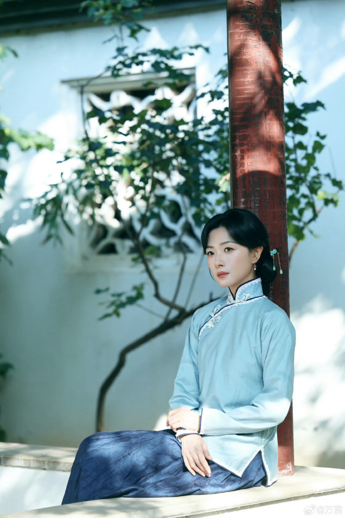 万茜民国白月光造型 太戳人!雾蓝旗袍衬出江南气韵,眼神清醒又坚定,温柔而有力量,