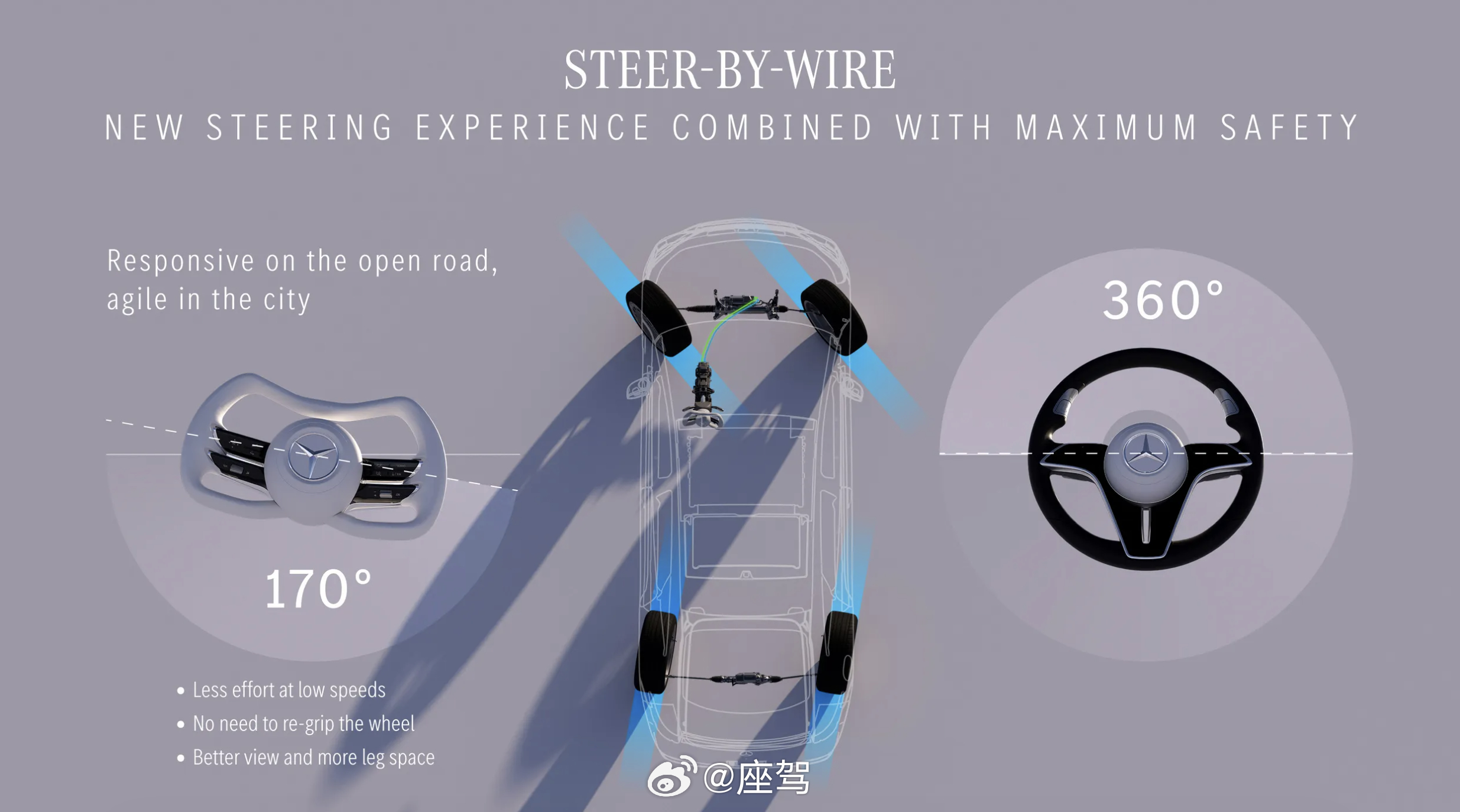 新车将选配线控转向系统,通过取消机械连接消除路面震动,并大幅减少过弯时的转向幅度(无需交叉换手)。与之匹配的全新矩形“轭式”方向盘为驾驶员提供了更宽裕的腿部空间和无遮挡的仪表盘视野。该系统已完成超百万公里测试,并具备双信号冗余机制以确保安全。