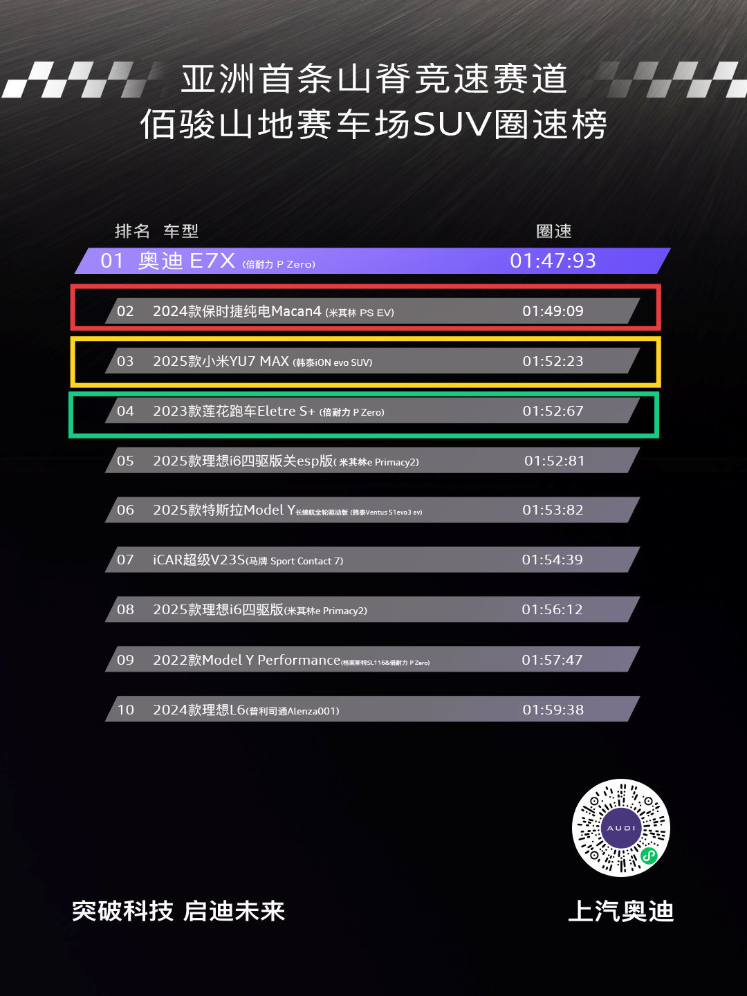 奥迪登顶亚洲山脊赛道最速SUV还没上市就先刷新纪录!奥迪E7X以1分47秒93的