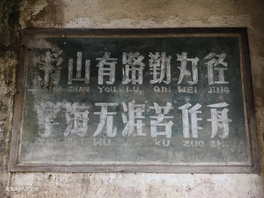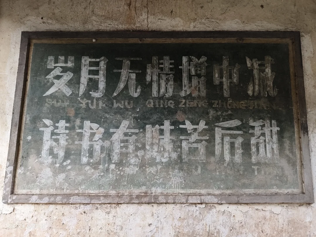推开吱呀作响的木门,天井里的石板路还留着孩子们奔跑的痕迹,墙上“书山有路勤为径,学海无涯苦作舟”“岁月无情增中减,诗书有味苦后甜”的标语,虽已斑驳却依旧振聋发聩。门楣上的五角星、褪色的校名石匾,还有那幅年代感拉满的黑板报,每一处都在诉说着三溪场几代人的青春。