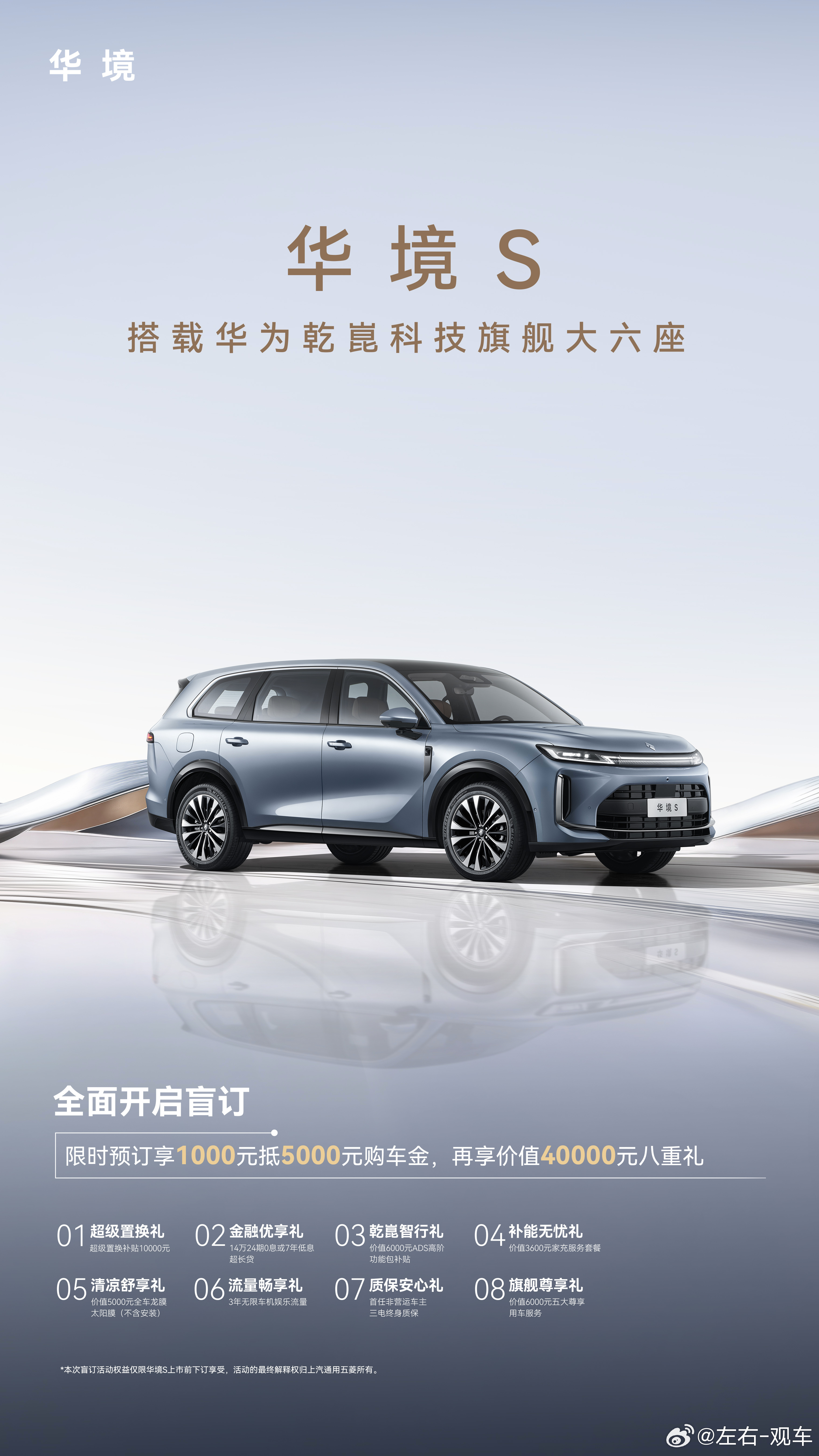 华境S 全面开启预订!限时预订享1000元抵5000元膨胀金科技旗舰大六座,全系标配华为乾崑一路万般美好,华境S静待您的亲启华为乾崑大六座华境S开启预订华境S上市即支持城区领航辅助 华境S全系标配华为乾崑
