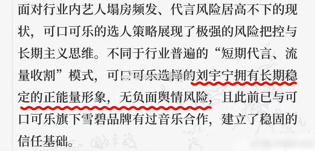 可口可乐说“刘宇宁拥有长期稳定的正能量形象”“无负面舆情风险”谁懂从国民品牌说出这两句话的含金量