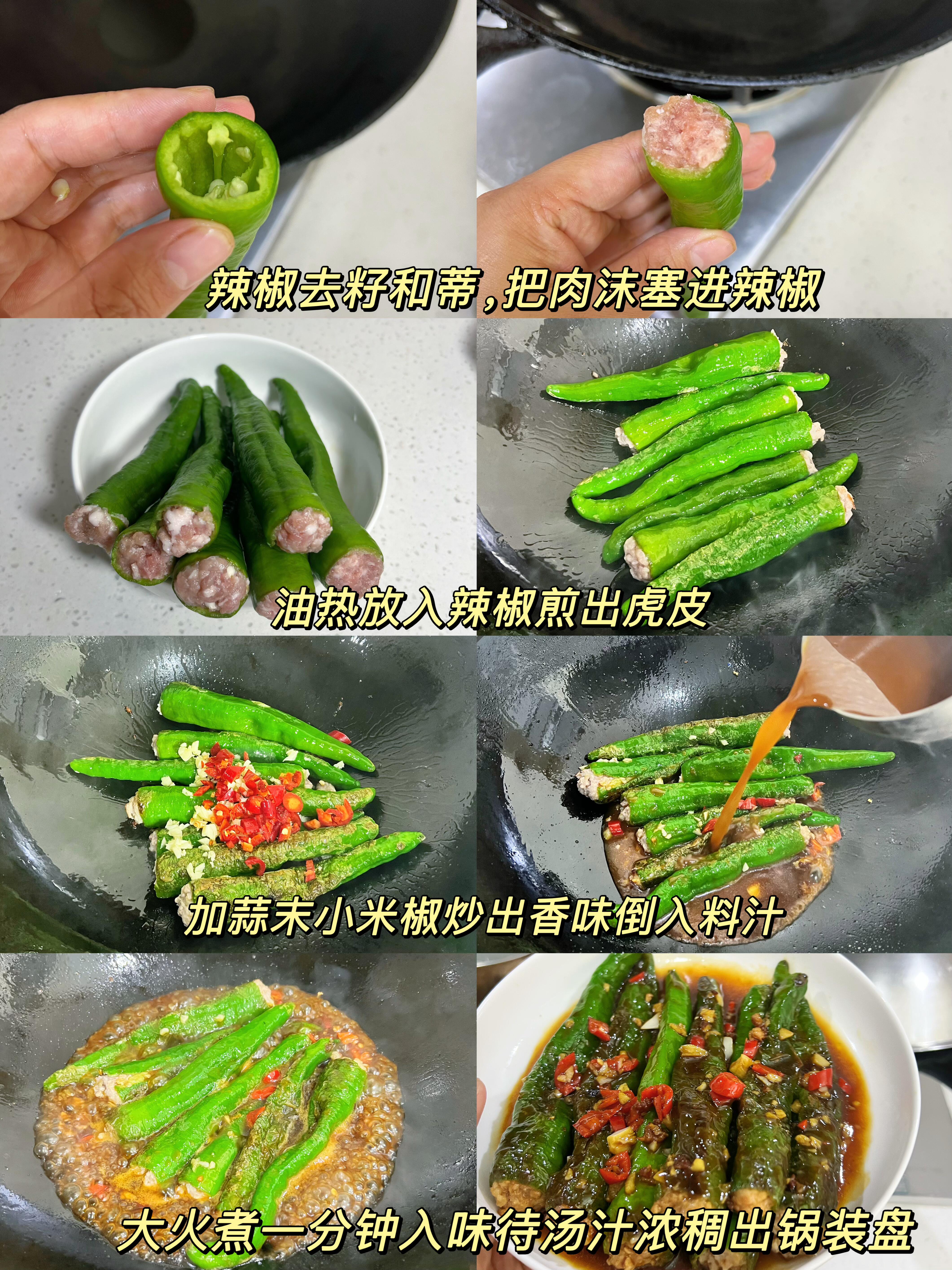 青椒酿肉!虎皮焦香+爆汁肉馅,一口封神