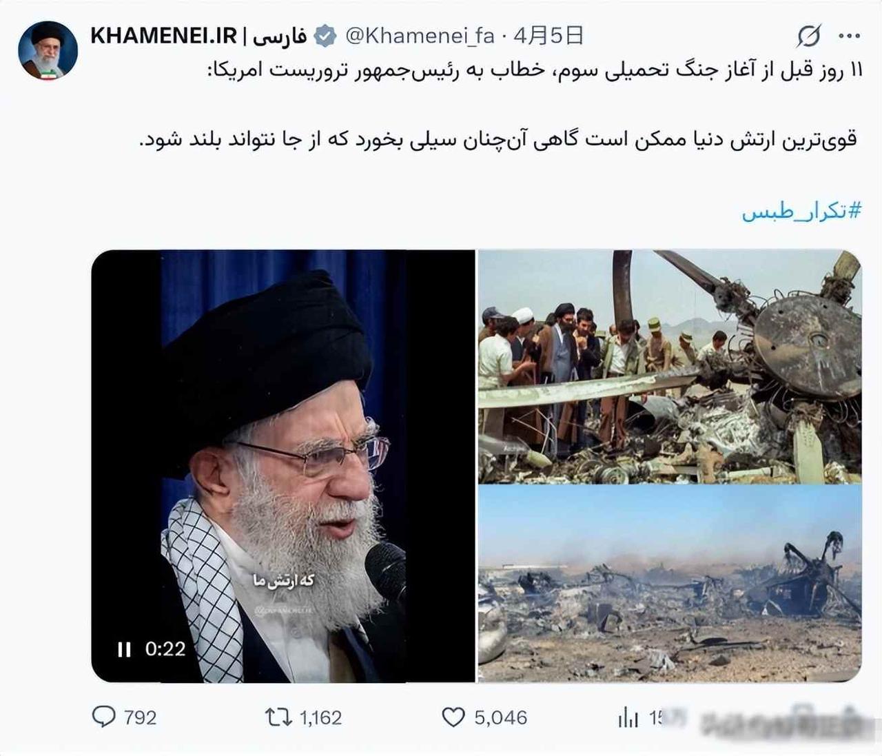 4月5日,伊朗最高领袖哈梅内伊在社交账号上发出帖子,距离他"去世"的消息传出已经过去一个多月,他在帖子里把1980年美军"鹰爪行动"的失败和最近F-15E战机被击落的事件放在一起比较,用这种方式来回应特朗普经常说的"美军天下无敌"这句话,这条帖子的语气带着明显的讽刺意味,很明显是针对美国而来的。 早在二月二十八日,伊朗官方就说过他已经去世,还开始了四十天的哀悼活动,但到现在为止,他们既没有公布他的遗体照片,也没有举办葬礼,更没有放出任何下葬的影像,时间一直往后拖延,外界早就觉得不可信了,这哪里是在悼念一个人,根本就是在用这个当掩护来完成权力的交接过程。 他儿子穆杰塔巴已经被推选出来接替位置,不过他的经验还不够多,声望也不算高,面对美国和以色列在舆论上的围攻时显得有点吃力,哈梅内伊选择在这个时候公开露面,不是为了证明自己还活着,而是借着"已故领袖"这个身份来给新的领导人撑腰,这样既能稳定住内部局面,又能吓退对手,还能让对方的情报分析变得混乱起来。 葬礼的事情还在准备中,交接的工作在私下里继续进行。 哈梅内伊 伊朗击落F15 伊朗战役