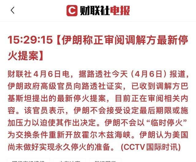 太刚了!伊朗直接亮明底线,谁也别想拿捏!据财联社最新消息,伊朗已经收到了巴基斯坦提出的停火提案,正在审阅,但态度直接拉满,一点不含糊。我是真觉得,伊朗这次太清醒了。想给它设最后期限?想施压逼它快点决定?人家直接说不接受。更关键的是,别想用临时停火,换伊朗开放霍尔木兹海峡,想都别想。 伊朗这次在停火事情上的表态很直接。4月6日,财联社等媒体报道,伊朗政府高级官员确认已经收到巴基斯坦转来的停火提案,目前正在审阅。提案是由埃及、巴基斯坦和土耳其这些调解方一起弄出来的,主要内容是建议先马上停火,然后要求伊朗开放霍尔木兹海峡,接着用15到20天时间去谈更全面的协议。 伊朗这边没有绕弯子。官员明确说,不会接受任何最后期限,也不会因为外部施压就赶紧做决定。他们还特别指出,不会拿临时停火去换霍尔木兹海峡的开放。霍尔木兹海峡是全球石油运输的重要通道,大概五分之一的世界石油要从这里过,伊朗控制着这个地方,现在因为冲突关闭了部分通行,影响不小。伊朗的逻辑很简单,美国那边还没显示出要永久停火的诚意,所以临时安排没意义。 伊朗通过巴基斯坦渠道正式给了回应。回应里面列了10条内容,核心就是要永久结束冲突,而不是短期暂停。里面提到结束地区冲突、制定霍尔木兹海峡的安全通行协议、解除制裁,还有战后重建这些事。伊朗的意思是,只有拿到实实在在的长期和平保证,才会考虑相应步骤。临时停火在他们看来,只是给对方喘口气的机会,以后可能又打起来,所以直接拒绝了这种交换条件。 美国总统特朗普那边放话,设了最后期限,说如果伊朗不开放霍尔木兹海峡,就可能对伊朗的基础设施动手。伊朗外交部发言人埃斯迈尔·巴盖伊在记者会上也说了,谈判和最后通牒、战争威胁放在一起不合适。伊朗坚持自己的底线,不玩虚的,不搞短期妥协。 从实际情况看,伊朗这个态度有它的道理。霍尔木兹海峡对伊朗来说是重要筹码,开放它就等于让出部分控制权。如果只是临时停火,冲突可能很快又起,伊朗等于白白丢了杠杆。过去类似情况里,临时协议往往没带来真正和平,反而让一方重新准备。伊朗这次审阅提案的同时,直接亮出自己的10条回应,等于把球踢回去,要求对方拿出永久解决的诚意。 巴基斯坦作为调解方,起到传递信息的作用。提案先到伊朗手里,伊朗审阅后通过同一渠道反馈。整个过程没有公开谈判桌上的讨价还价,而是通过第三方渠道来回沟通。这也符合当前各方都不想完全撕破脸,但又各有底线的现实。伊朗官员强调,美国还没准备好永久停火,这点直接点出了问题所在。如果美国那边继续施压或者设期限,伊朗这边就不会松口。 中东这地方,石油通道、地缘冲突交织在一起,任何一步都牵动全球能源价格和供应链。伊朗拒绝临时停火换海峡开放,等于告诉各方,别想用短期安排拿捏自己。想谈就得谈彻底的。地区内还有以色列对伊朗设施的行动在继续,导弹往来也没完全停,局势还在发酵。伊朗的回应显示出他们对自身利益的维护,同时也给调解方留了继续沟通的空间。 伊朗这次表态算得上清醒。不是一味强硬,而是有条件地坚持永久和平。10条回应覆盖了结束冲突、安全通行、制裁解除和重建,算是一个比较完整的框架。相比之下,提案里的临时停火加15-20天谈判,看起来更像过渡安排。伊朗不接受这种安排,逻辑上站得住脚,因为历史经验告诉大家,短期停火如果没有强有力保证,往往只是暂停,不是结束。