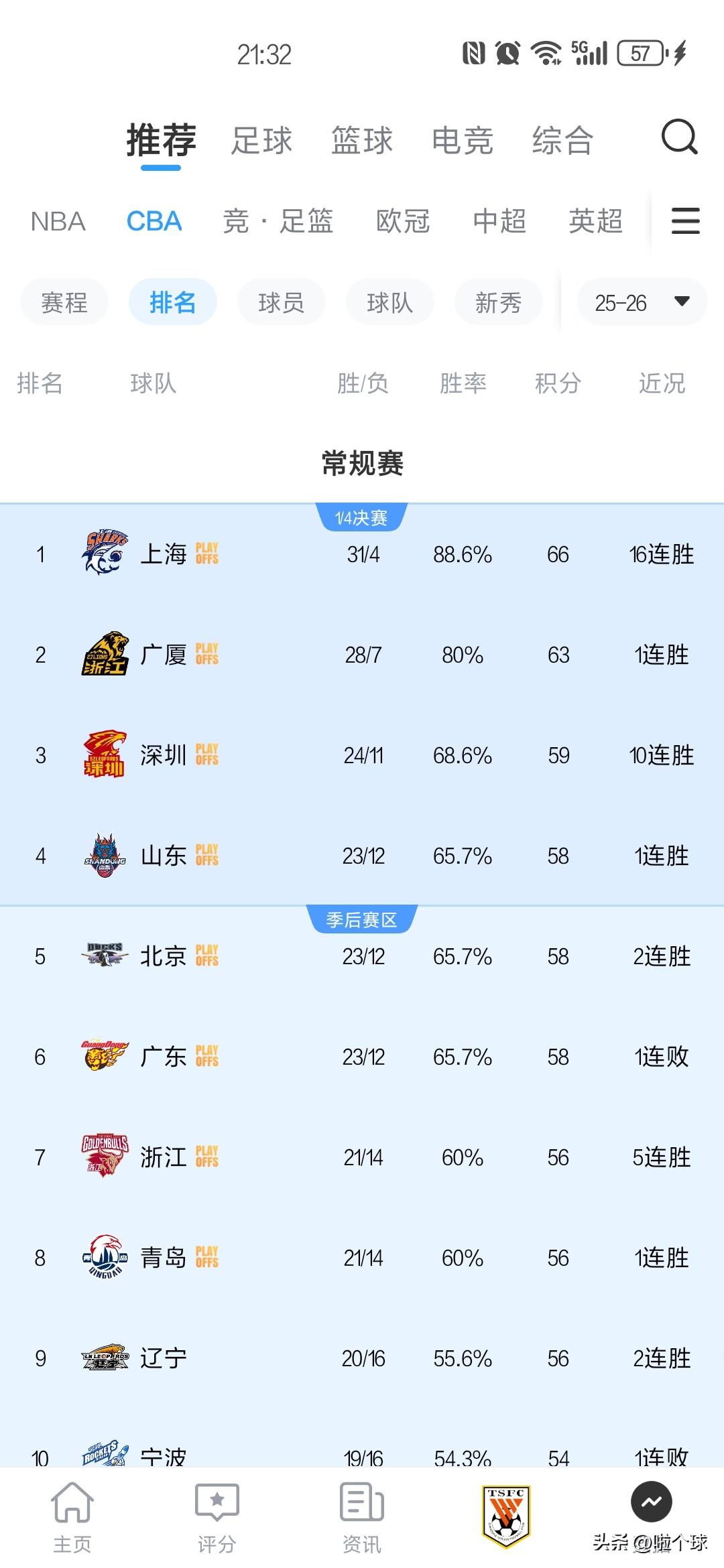 看了积分榜,山东高速想稳住前四,难! 接下来还有七轮比赛,但难度很大 难啃的对手七场比赛,五场前八的队伍,想直接晋级季后赛,有点难度,所以做好打附加赛的准备是必须的! 第一的上海 第二的广厦 第三的深圳 第五的北京 第七的浙江 第九的辽宁
