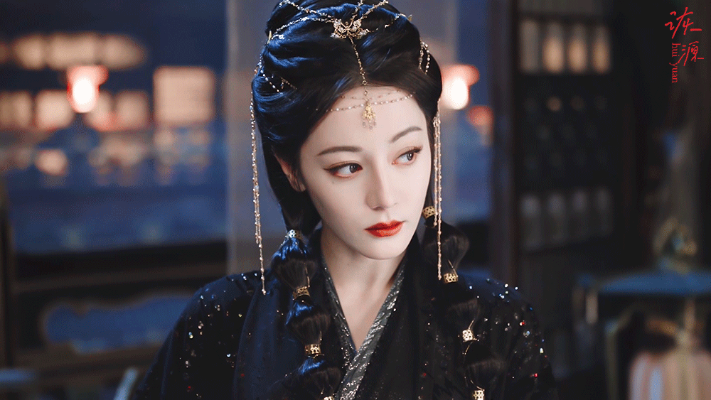 迪丽热巴 《白日提灯》贺思慕 / 动图▷EP17-02 黑衣+额饰+双灯笼辫-抬