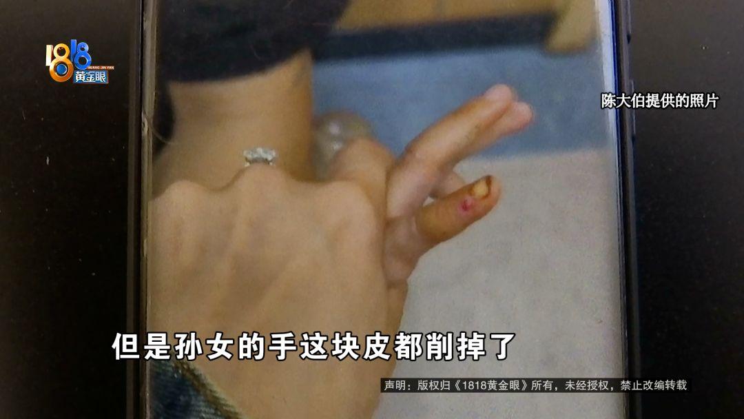 家里人冲出去一看,孙女的手指鲜血直流,右手小指背侧竟然被削掉了一块约0.5*0.3cm的皮,软组织都缺损了。