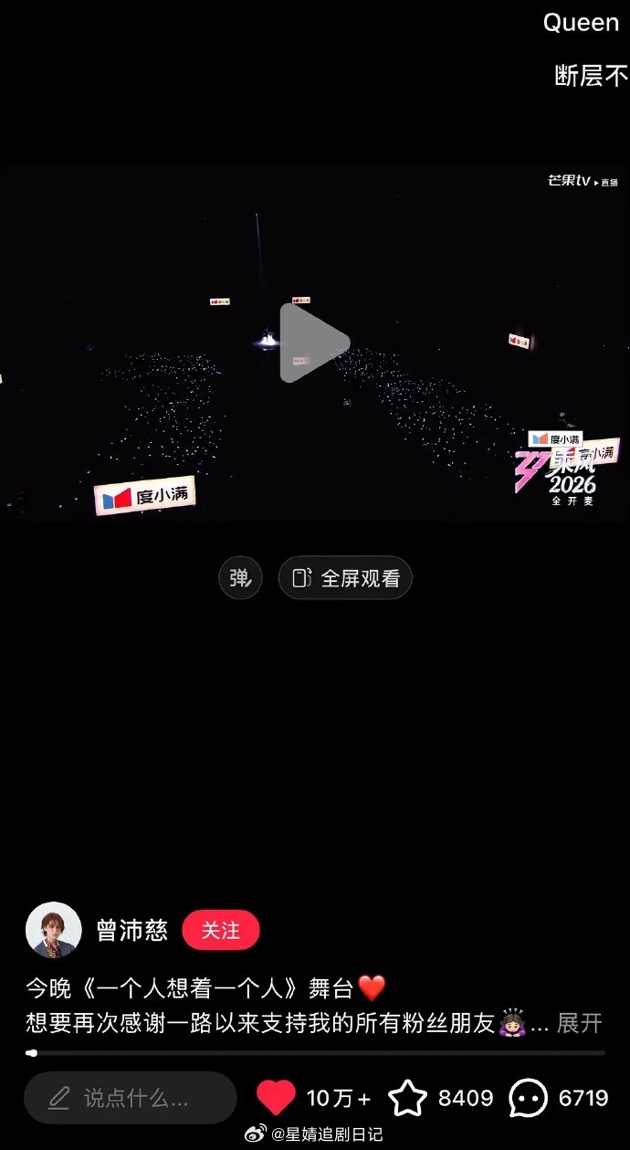 曾沛慈乘风2026初舞台《一个人想着一个人》全平台都有很多人喜欢啊 曾沛慈初舞台