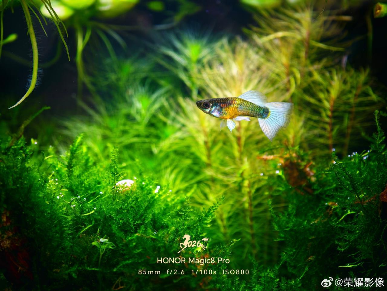 其实生活中的美好无处不在,刚刚看到荣耀影像分享了一张,利用荣耀Magic8 Pro拍摄鱼缸中孔雀鱼的照片,典型的原生风草缸造景,还原了孔雀鱼的自然栖息环境,前景与背景中的水草,蛮好的凸显了主体鱼的细节,营造出自然的水下森林环境。畅聊数码新品 数码资讯