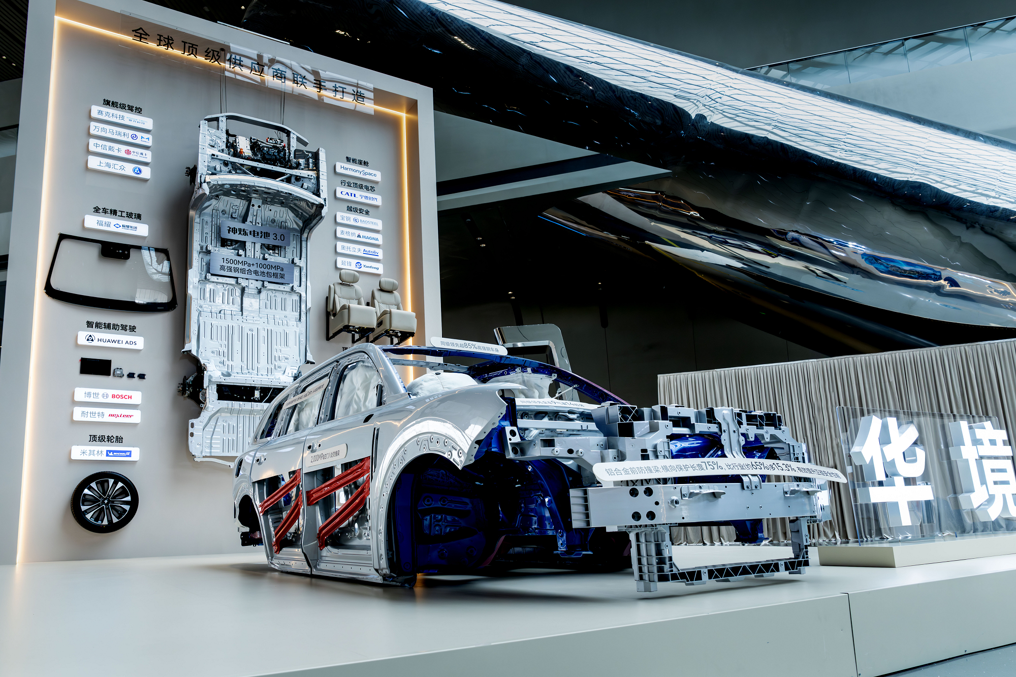 这款大六座SUV内核用的是RISE技术体系,说白了就是在安全、智能、空间和效率这几个维度都往上跳一跳。它全系标配了华为乾崑那套“全家桶”,有首创的舱内激光雷达,还有ADS Pro增强版智驾系统,上市就能用城区领航辅助。日常通勤遇到堵车,这套系统或许能让你放松不少。CAS 4.0全维防碰撞系统算是把主动安全堆得比较满,而被动安全方面,整车用了2000MPa那种核潜艇级的钢材,配合一体式热成型技术与五纵十一横六环笼式车身和9个安全气囊,安全感满满。电池来自宁德时代超级增混电芯的神炼电池3.0,官方宣传用了五“零”安全科技,安全防线算是又加了一道。华境S全维安全王中王